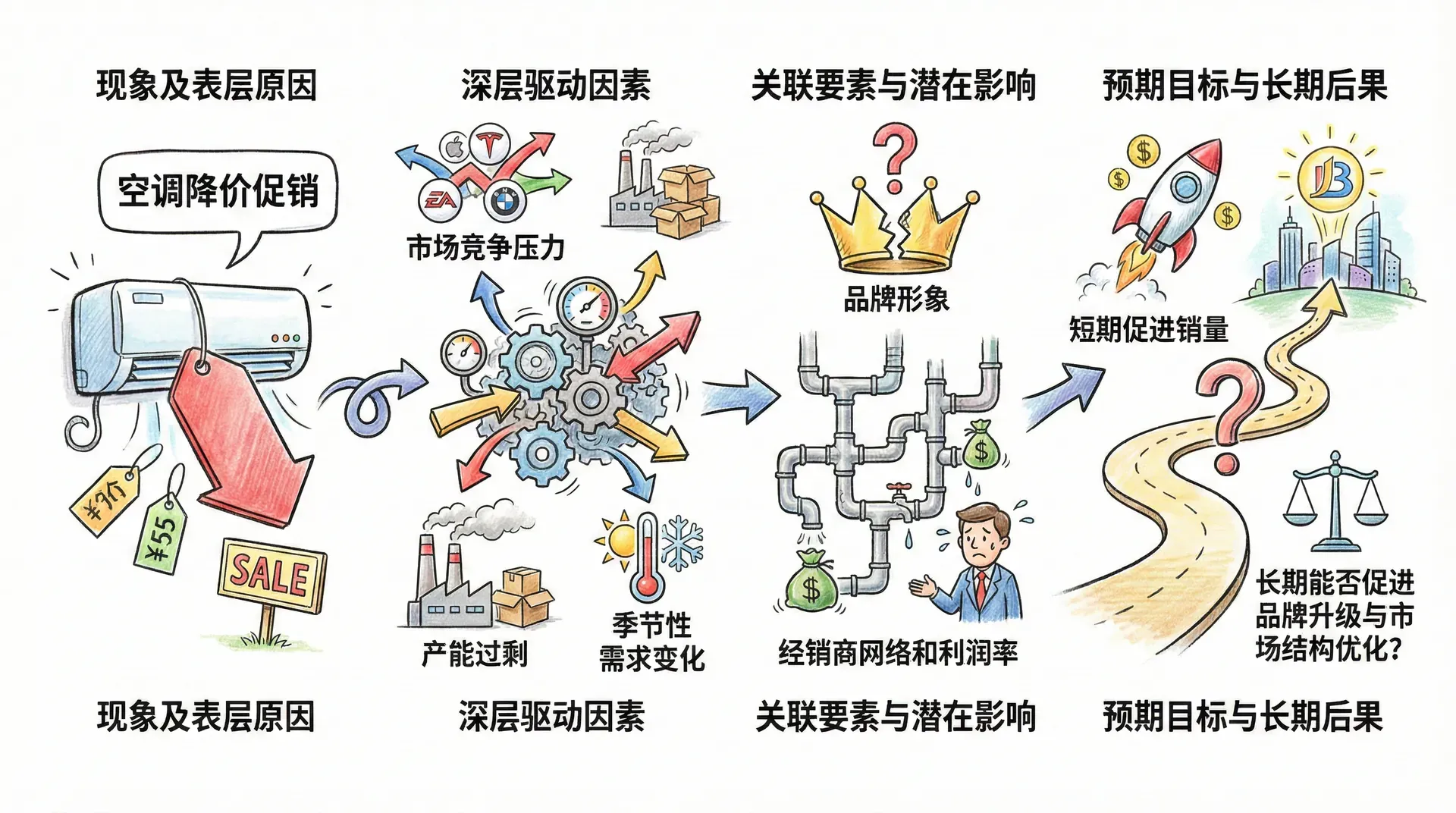 系统思考意味着在分析问题时,不仅要看到表面,更要深挖本质,认清各种要素之间的关系,理解其因果链条以及产生的连带影响。面对复杂情境,应不断追问“为什么”,探查问题的根本原因,对企业内部与外部环境进行整体把握。