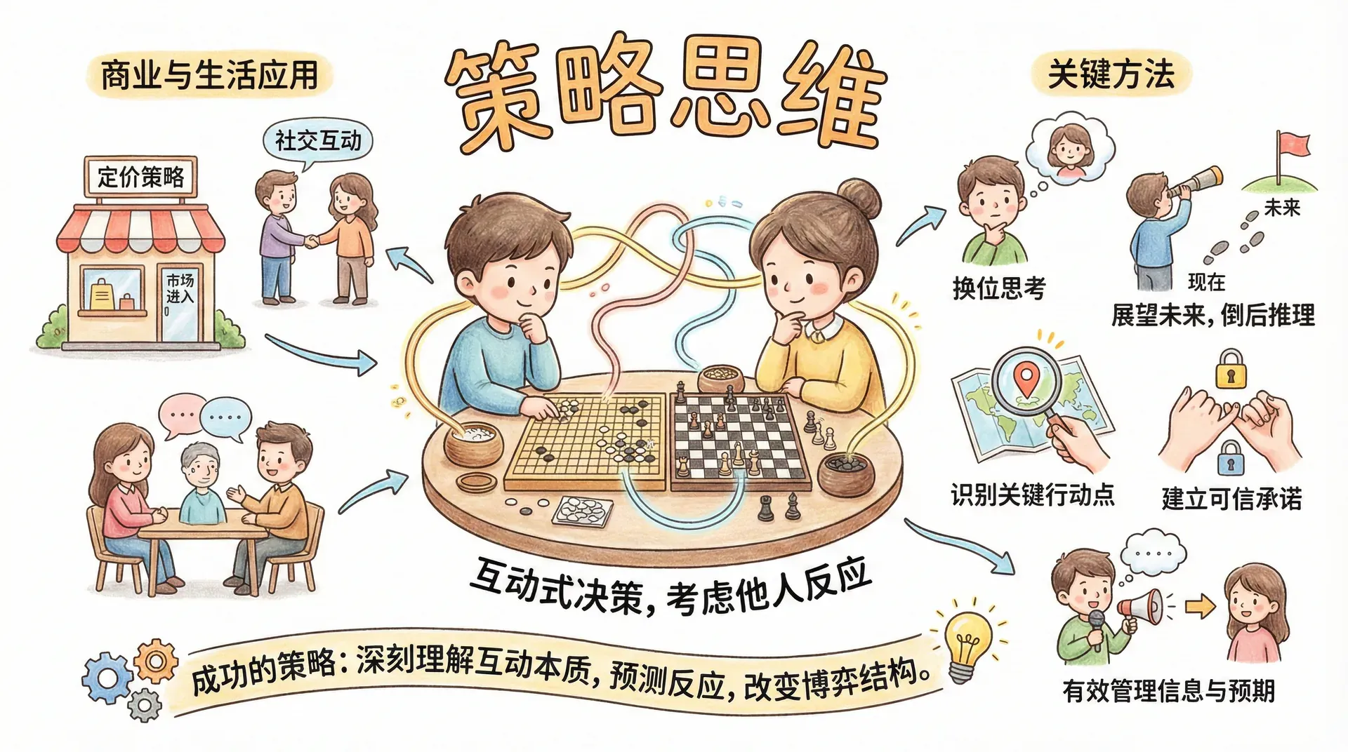 策略思维不仅仅体现在企业竞争、市场博弈等“大事件”中,其实我们日常生活中的方方面面,也都离不开策略性的思考。从家庭成员之间的沟通,到资源分配,从社交圈子互动,到重大的个人选择,策略思维随处可见。