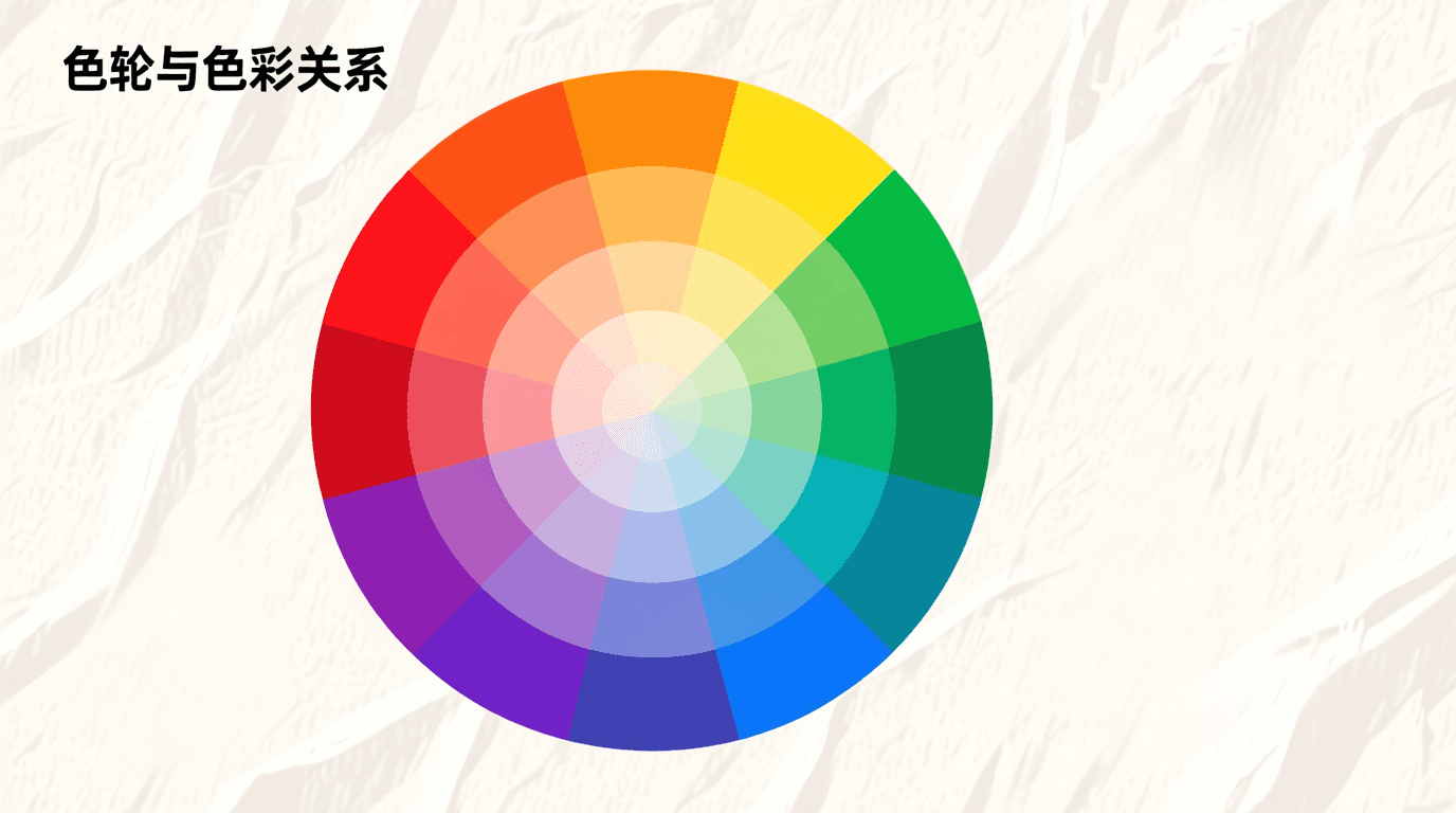 色轮是理解和组织色彩关系的最直观工具。它将所有颜色按照色相排列成一个圆形,让我们能够清楚地看到不同颜色之间的关系,理解为什么某些颜色搭配起来和谐,而另一些则产生强烈的对比。掌握色轮的结构和色彩关系,是我们学习色彩搭配的基础。