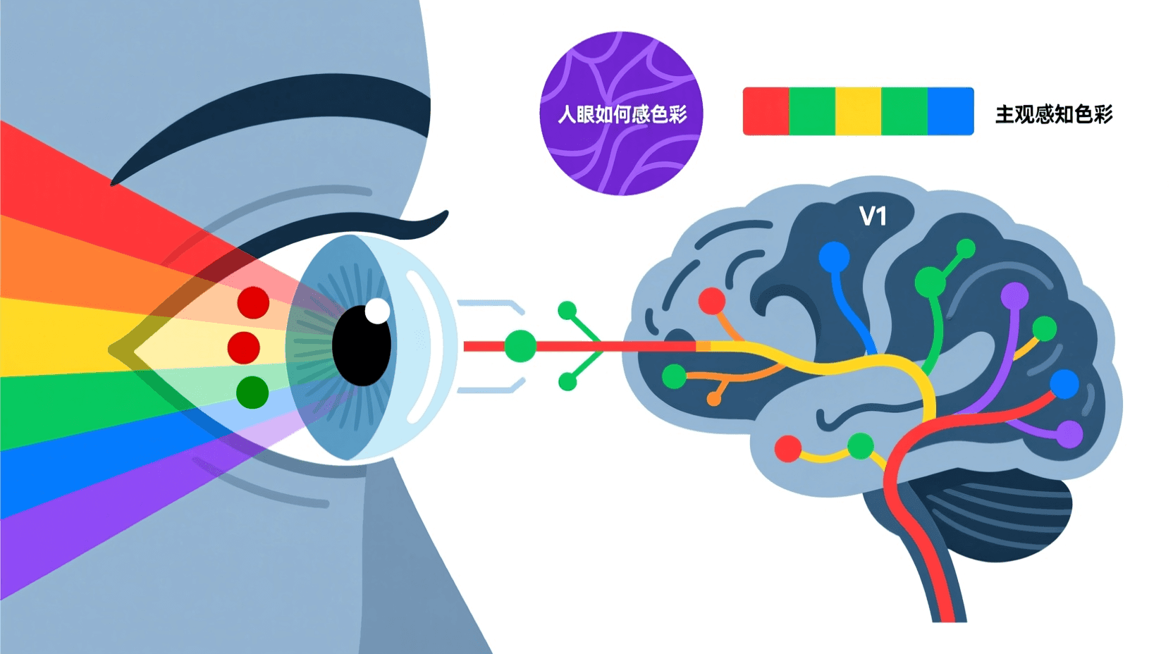 光创造了色彩,但色彩最终是在我们的大脑中产生的。从光进入眼睛到我们感知到色彩,这个过程涉及复杂的生理和神经机制。理解这个过程,不仅能够帮助我们理解为什么不同的人可能对同一个颜色有不同的感受,还能够让我们明白色彩感知的主观性和复杂性。