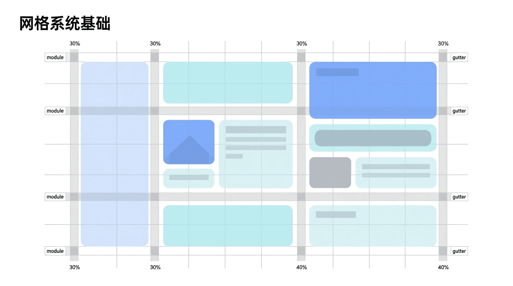 网格系统是排版设计中的高级工具,它通过建立结构框架来组织页面元素,创造出有序、协调的布局效果。网格系统不是僵硬的约束,而是灵活的指导原则。