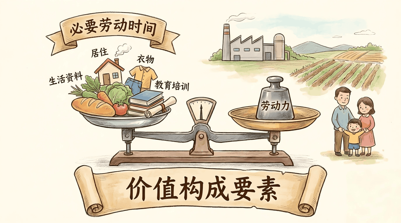 为了维持自己,活的个人需要一定量的生活资料。因此,生产劳动力所必需的劳动时间,可以归结为生产这些生活资料所必需的劳动时间,或者说,劳动力的价值,就是维持劳动力所有者所必需的生活资料的价值。