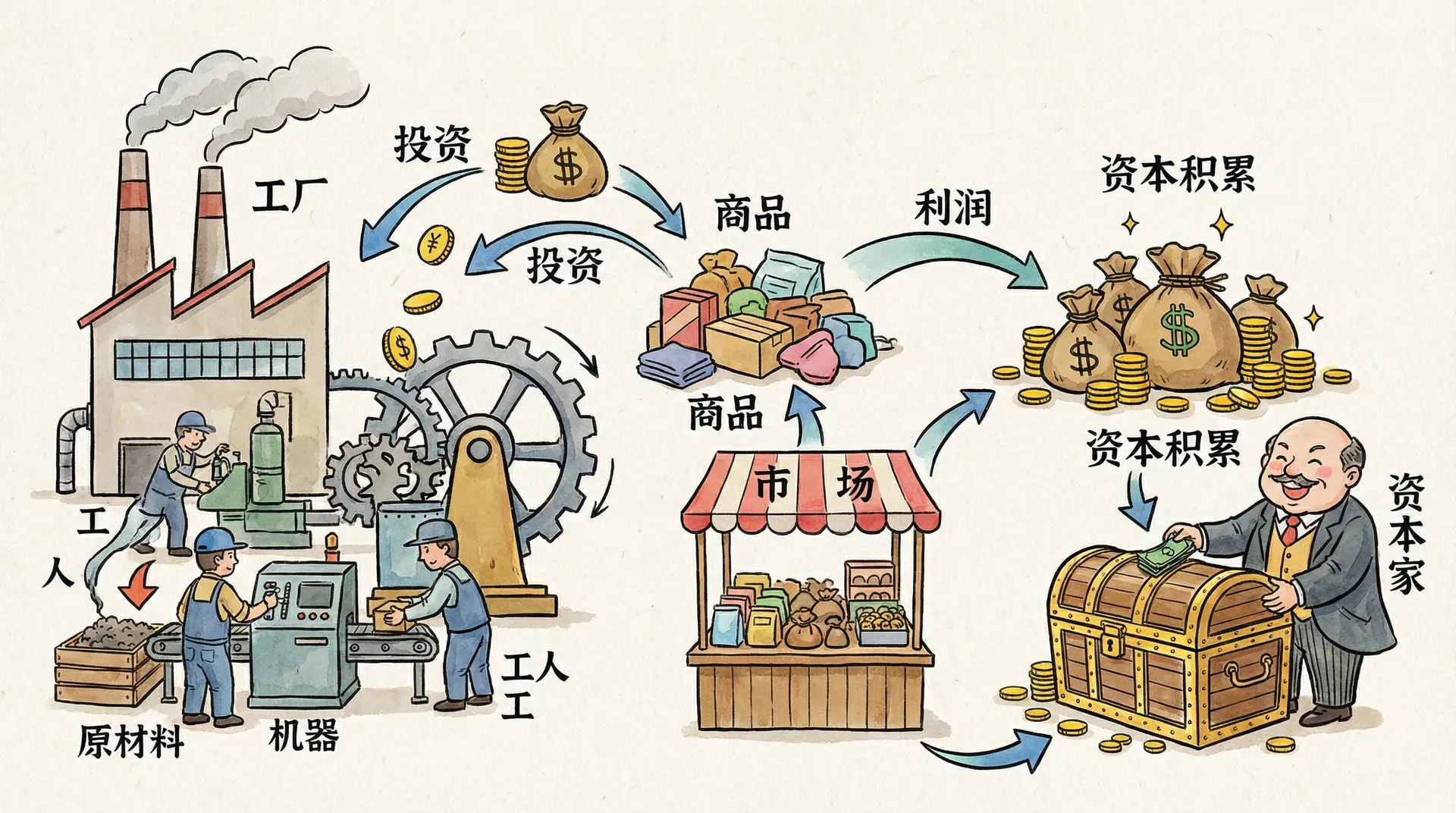 在分析资本增殖之前,我们需要首先明确“剩余价值”这一概念。剩余价值,简单来说,就是资本家在商品生产和流通过程中,通过剥削雇佣劳动者创造出来的超过其劳动力价值的那部分价值。剩余价值的产生,正是资本主义经济系统不断追求增殖和扩大的根本动力。