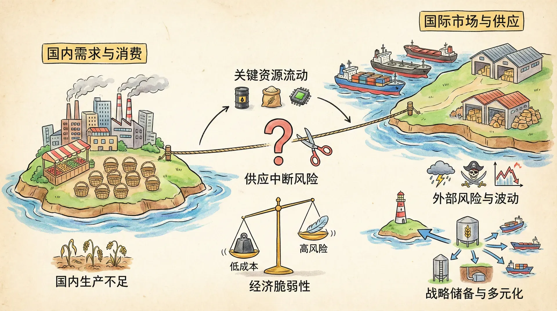 我们可以用图表分析不同能源安全策略的成本收益: