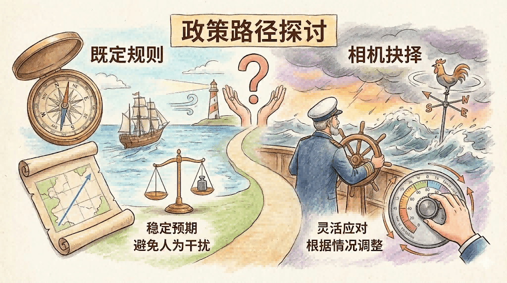 宏观经济政策的制定与取舍一直是国家经济治理的重要议题。不同学派的经济学家在该领域提出了多种观点与主张,围绕政府在稳定经济过程中应扮演怎样的角色持续争论。一方面,有观点强调政府应主动采取措施对抗经济波动,另一方面则主张让市场机制自动调节。除此之外,制定政策时究竟应否严格遵循既定政策框架,抑或灵活应对现实变化,也经常成为讨论的焦点。种种分歧体现了政策制定在理论与实践中的复杂性。