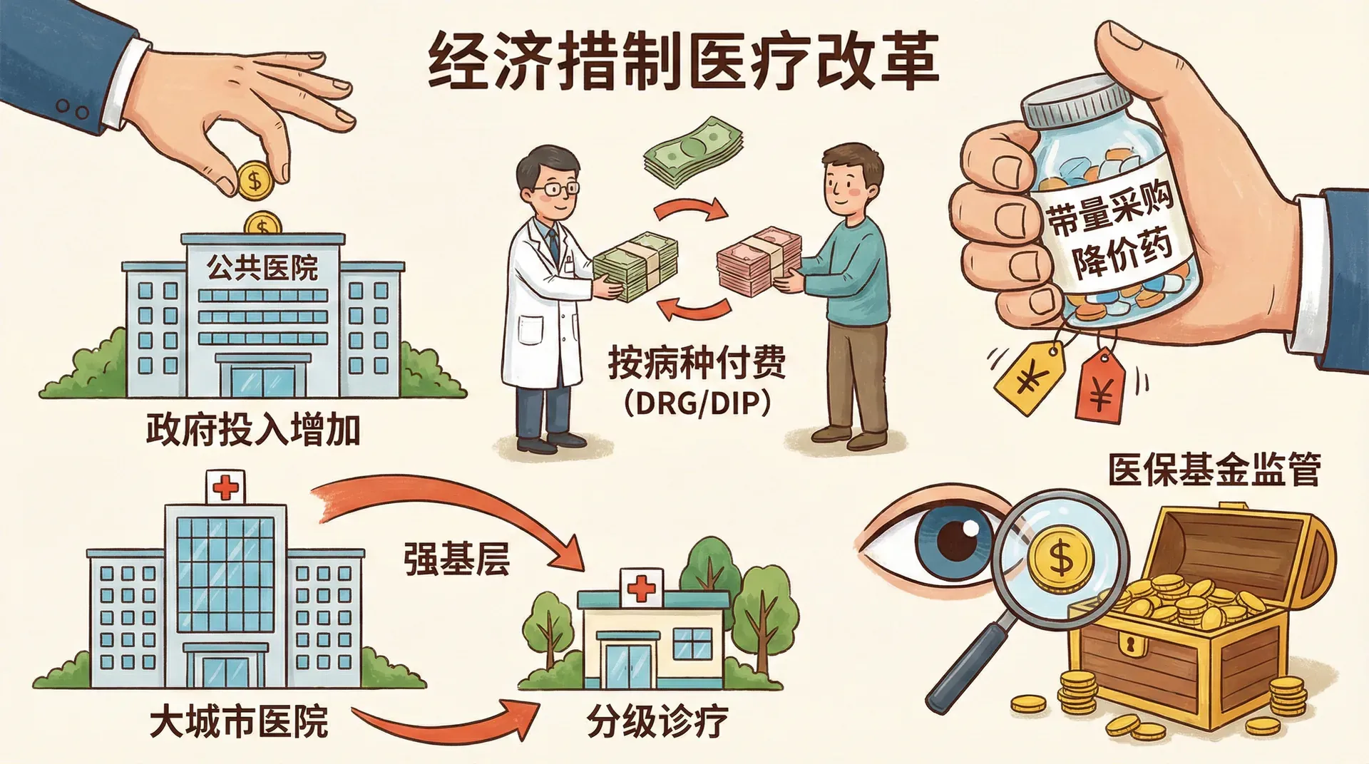 经济学理论认为,优化激励机制是遏制医疗成本膨胀的核心手段。对应的中国做法如下: