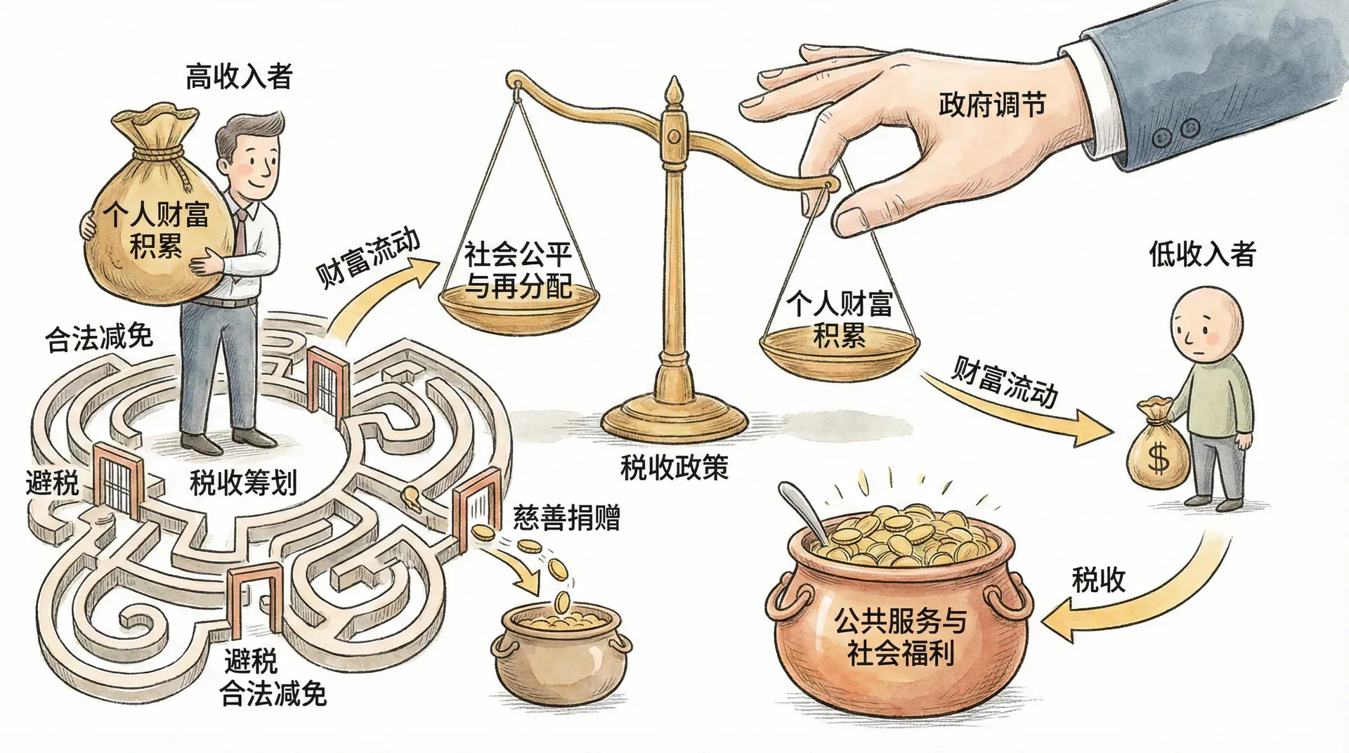 如果监管不到位,这种差异可能导致贫富差距扩大,社会公平性下降。因此,现代税制应加强透明度、提高普惠性,比如优化专项扣除、简化筹划流程,让更多人群受益,推动社会公平。