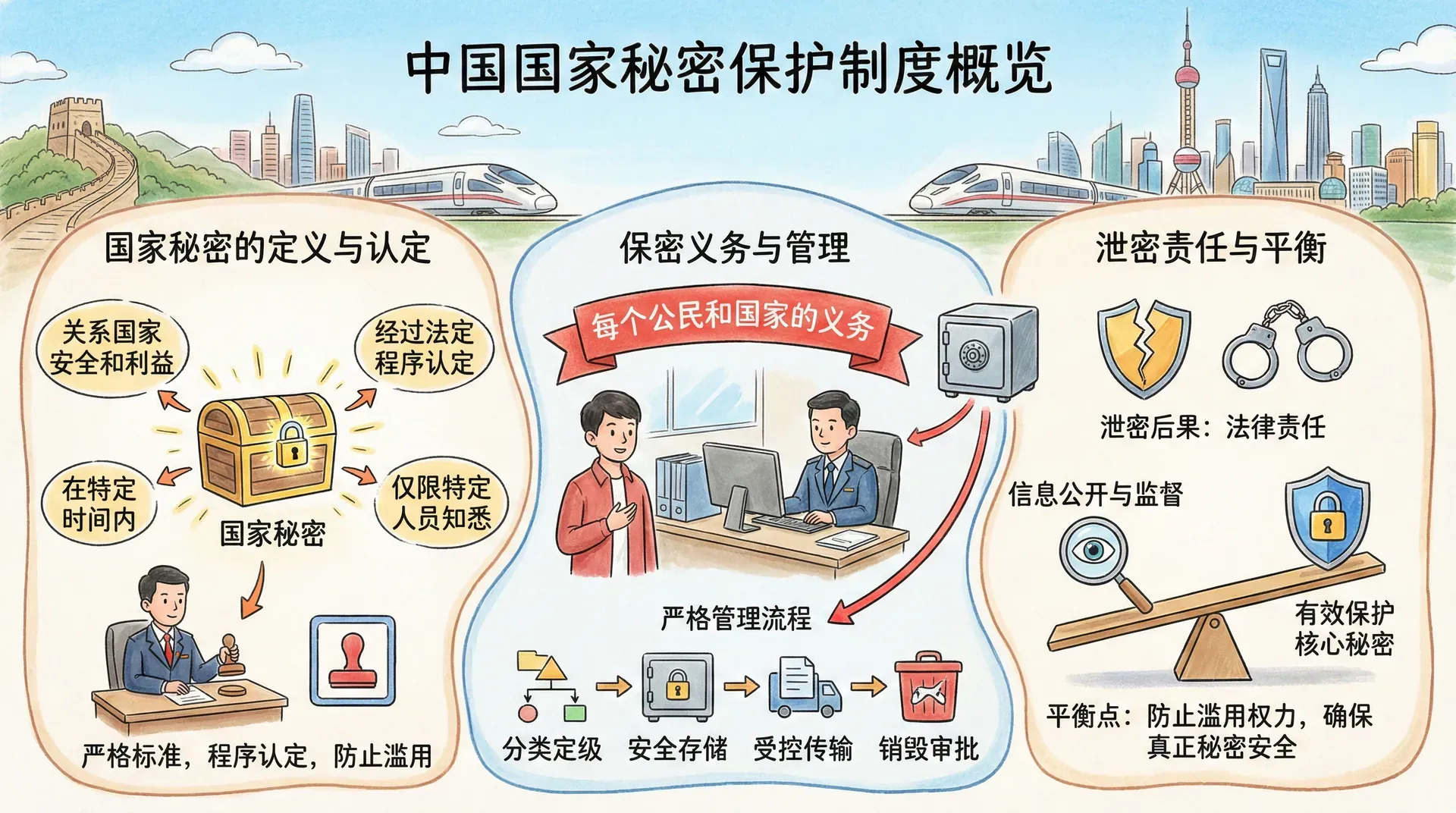 在任何一个国家,都有一些信息不适合公开,这些信息一旦泄露,可能会损害国家安全、外交利益或者经济利益。保守国家秘密是每个公民的义务,也是国家安全法律制度的重要组成部分。但什么算是国家秘密?秘密应当如何管理?泄密要承担什么责任?这些问题需要法律给出明确答案。