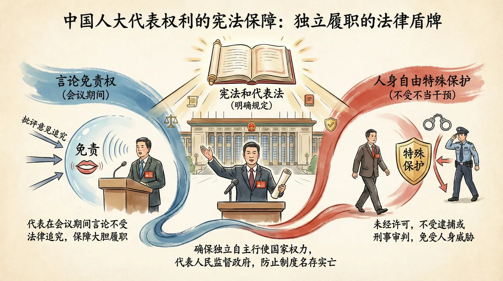 人大代表作为人民选举产生的国家权力机关组成人员,代表人民行使国家权力,监督政府工作。如果代表在履职过程中随时可能因提出批评意见而遭受法律追究,或因揭露问题而面临人身威胁,人民代表大会制度就会名存实亡。正是基于这一考虑,宪法和《代表法》确立了一整套代表权利保障机制。
