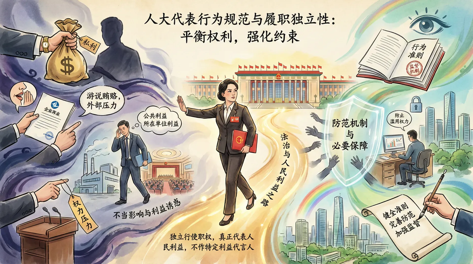 人大代表作为人民选举产生的国家权力机关组成人员,其行为不仅关系到个人形象,更关系到人大制度的公信力和权威性。在享有特殊权利保障的同时,代表也必须接受相应的行为规范约束,确保其能够真正代表人民利益、独立行使职权,而不是成为特定利益集团的代言人或谋取私利的工具。