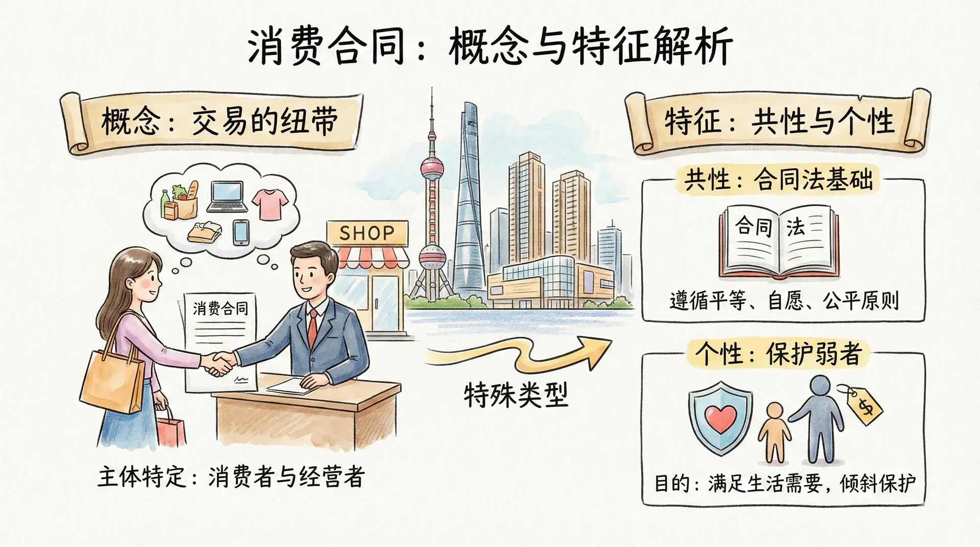 消费合同作为合同法体系中的一个特殊类型,既具有一般合同的共性,又有着鲜明的个性特征。准确把握消费合同的概念和特征,是理解整个消费合同法律制度的基础。