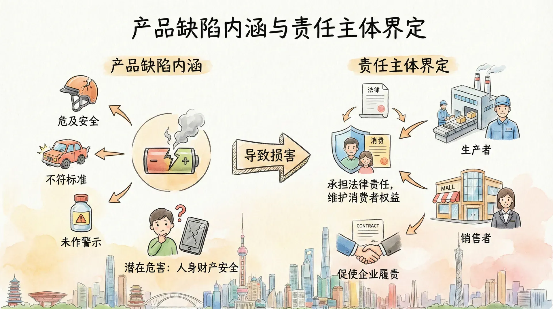 在产品质量法律体系中,正确理解产品缺陷的内涵及界定责任主体具有重要意义。产品缺陷不仅仅指一般意义上的产品质量问题,更强调其对人身和财产安全的潜在危害。产品一旦存在缺陷,涉及生产者和销售者等多方主体的法律责任明确划分,是维护消费者权益、促使企业履责的关键。本节将系统阐述“产品缺陷”的具体表现形式和法律认定标准,同时梳理在存在产品缺陷造成损害时,不同主体应当承担的相应法律责任,为理解产品质量责任制度奠定基础。