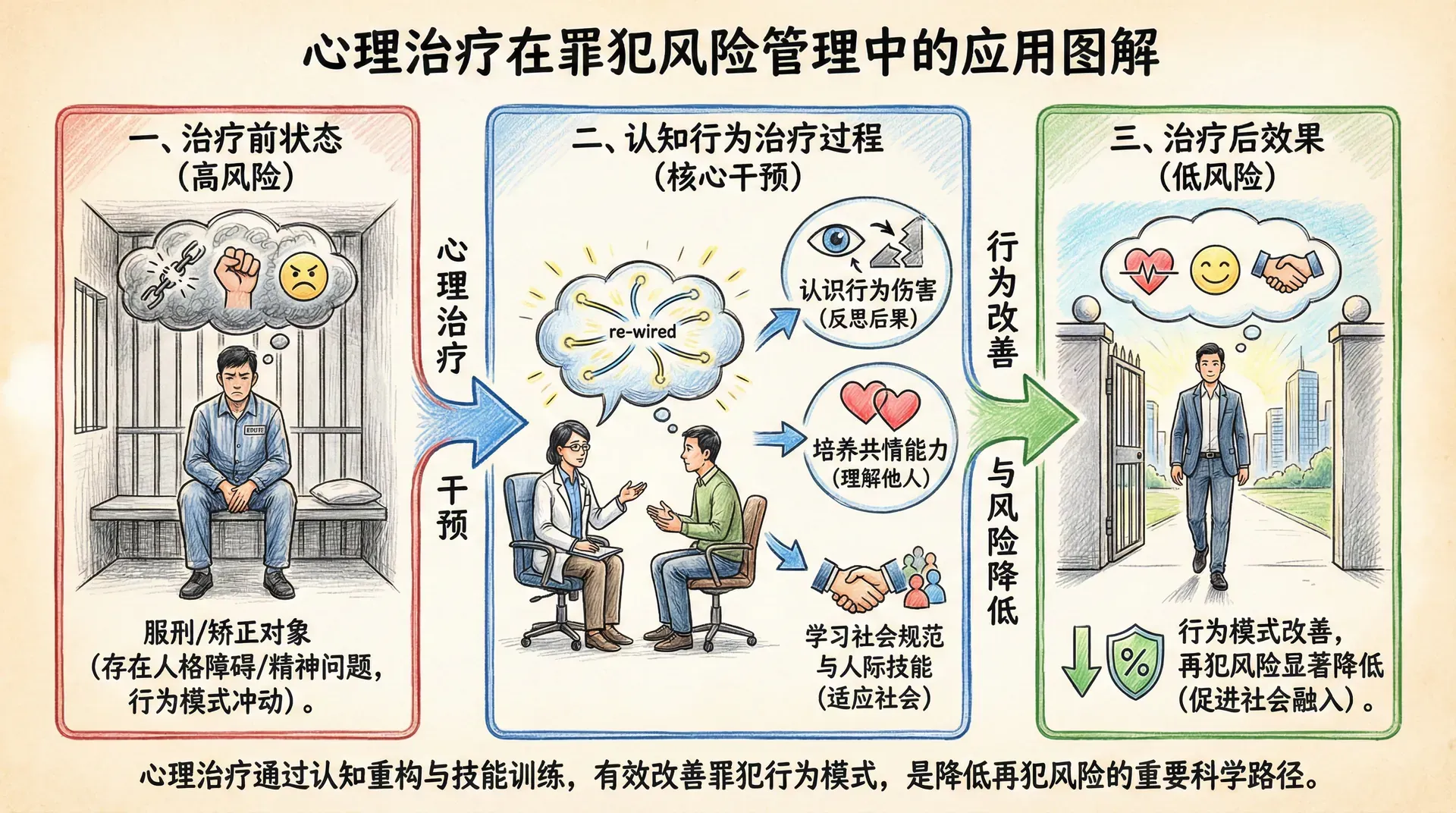 无论是人格障碍还是精神疾病,心理治疗干预在降低再犯风险、促进罪犯改造方面都发挥着重要作用。近年来,我国司法系统越来越重视对服刑人员和社区矫正对象的心理矫治工作。