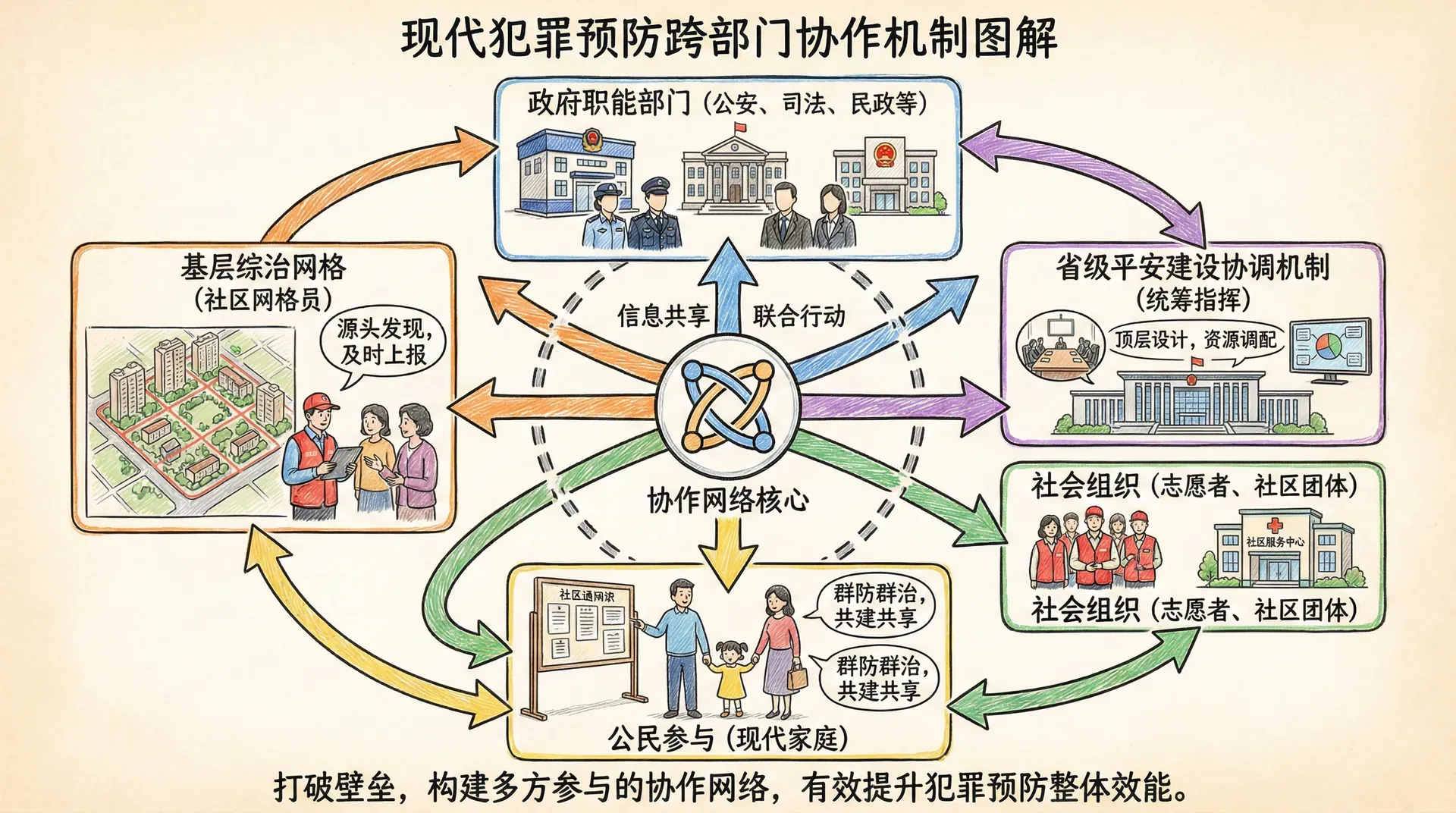 犯罪问题的复杂性决定了单一部门无法独立应对所有挑战。现代犯罪预防工作需要打破传统的部门壁垒,建立起政府各职能部门、社会组织和公民之间的有效协作网络。在中国当前的社会治理体系中,跨部门协作已经成为提升犯罪预防效能的关键途径。从基层的综治网格到省级的平安建设协调机制,各地都在探索符合本地实际的协作模式。
