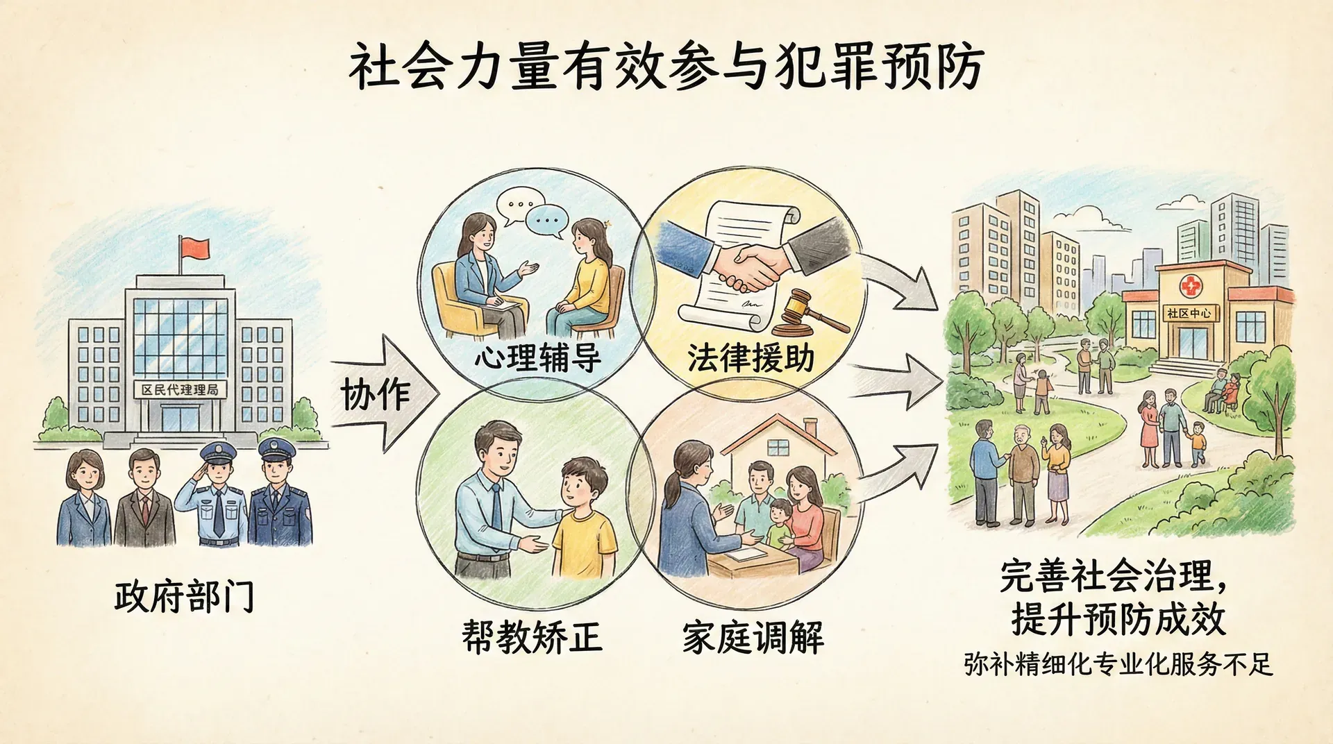 社会力量参与犯罪预防,需要政府部门做好组织协调、政策支持和监督管理,既要充分调动积极性,又要规范服务行为,确保取得实效。