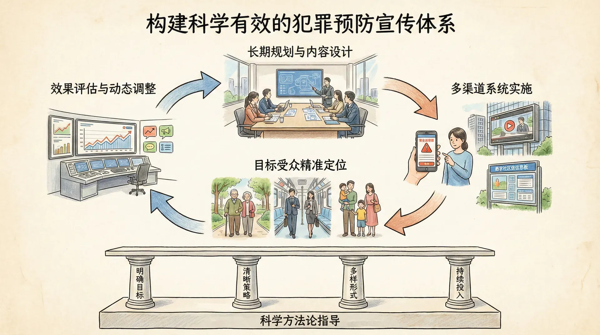 犯罪预防宣传不是偶然为之的应景活动,而是需要长期规划、系统实施的社会工程。从宣传内容的设计到传播渠道的选择,从目标受众的定位到效果评估的反馈,每个环节都需要科学的方法论指导。有效的宣传体系应当具备明确的目标、清晰的策略、多样的形式、持续的投入和动态的调整机制。