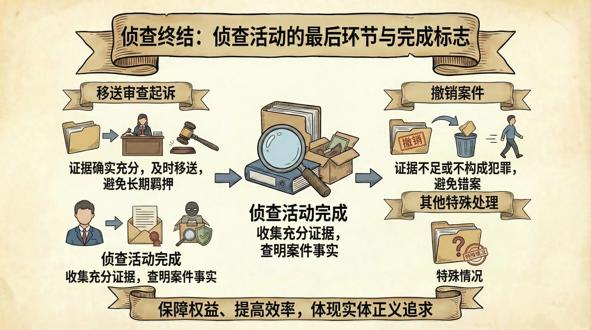 侦查终结不仅是程序上的要求,更体现了实体正义的追求。侦查机关必须在查明案件事实的基础上作出正确的处理决定。对于证据确实、充分的案件,应当及时移送审查起诉,避免长期羁押犯罪嫌疑人;对于证据不足或不构成犯罪的案件,应当撤销案件,避免错案的发生。侦查终结的质量,直接影响后续的审查起诉和审判工作。