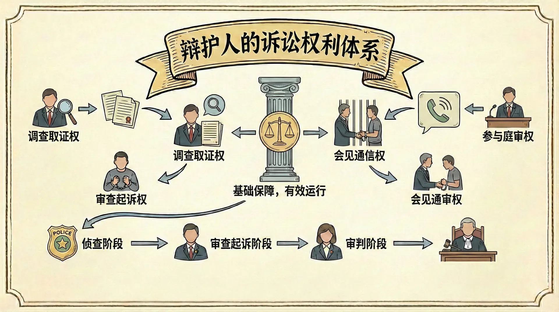 辩护人的诉讼权利是辩护制度得以有效运行的基础保障。如果辩护人只有辩护的义务而缺乏相应的权利支撑,辩护活动就会流于形式,无法真正发挥维护当事人合法权益的作用。我国刑事诉讼法对辩护律师的各项权利作了较为详细的规定,这些权利贯穿刑事诉讼的各个阶段,构成了一个相对完整的权利体系。