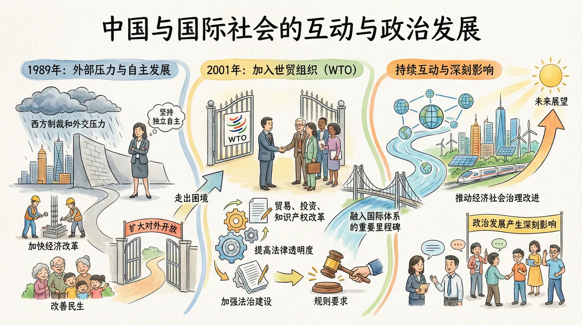 改革开放以来,中国积极参与国际事务,与国际社会的互动不断深化。这种互动对中国的政治发展产生了深刻影响。