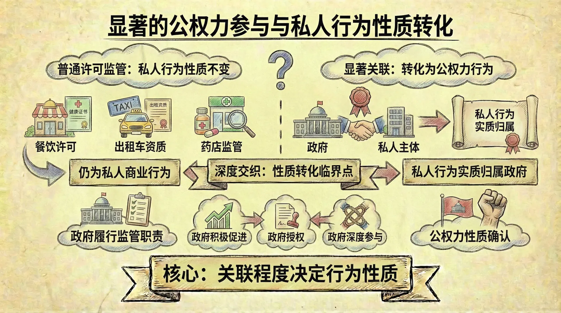 随着社会的发展,公权力行使的方式日益多元化,公私合作的模式不断创新,公权力行为的边界问题也将持续演变。把握公权力行为理论的基本原理和分析框架,才能在面对新问题时作出正确的判断。