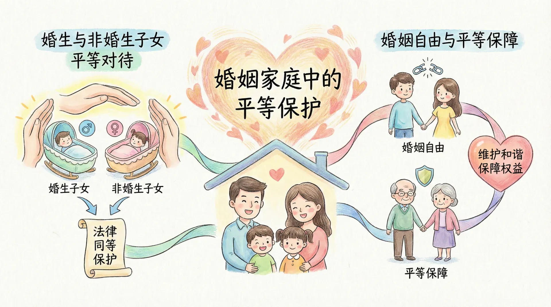 家庭是社会的基本单元,婚姻家庭关系中的平等保护对于维护社会和谐、保障个人权益具有重要意义。法律在这一领域的平等保护主要体现在婚生与非婚生子女的平等对待,以及婚姻自由与平等的保障。