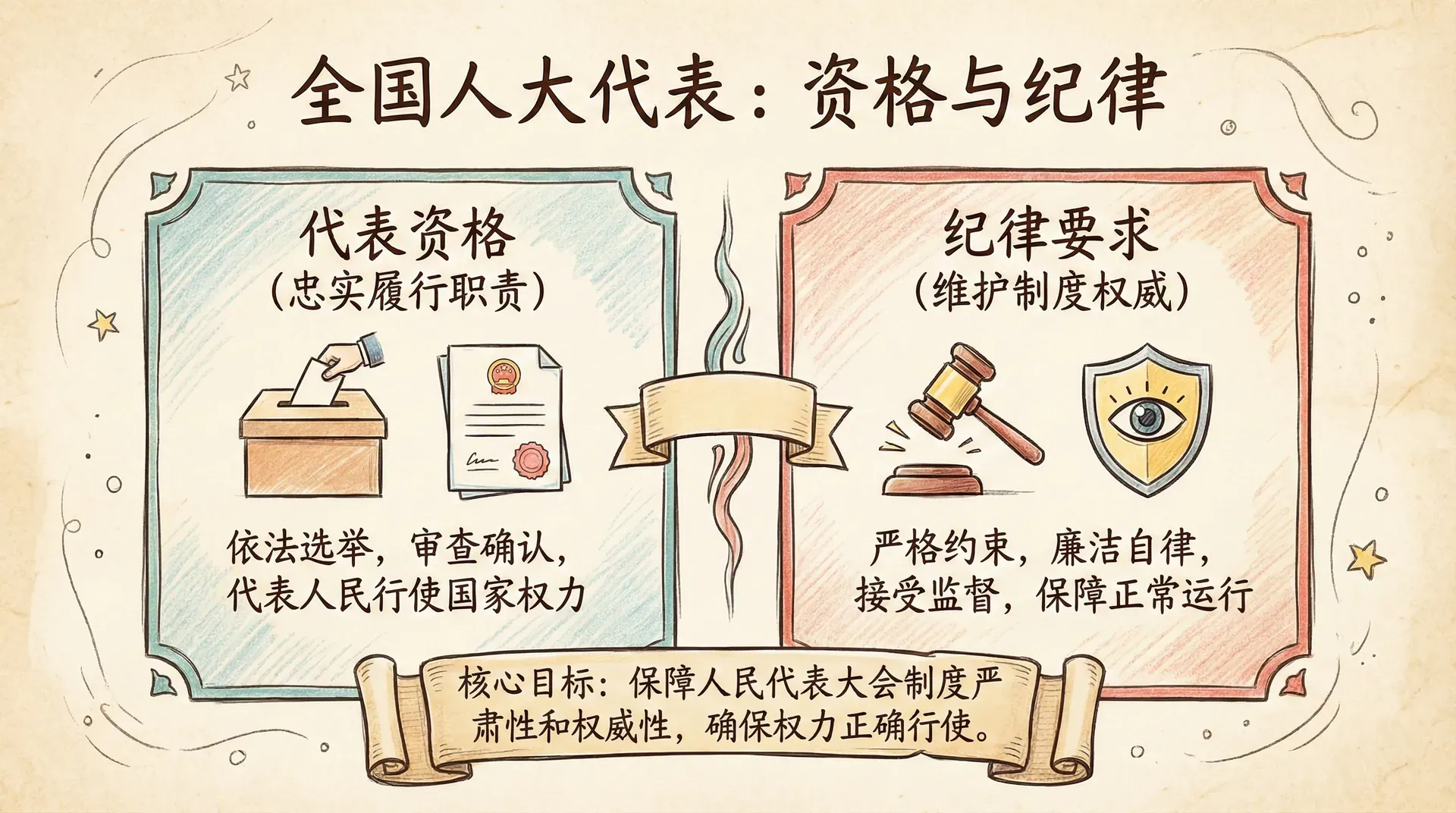 全国人大代表是国家最高权力机关的重要成员,他们的资格审查和纪律要求对于保障人民代表大会制度的严肃性和权威性具有重要意义。通过严格的代表资格确认程序和必要的纪律约束,可以确保人大代表能够忠实履行职责,真正代表人民行使国家权力,维护人大制度的权威和正常运行。