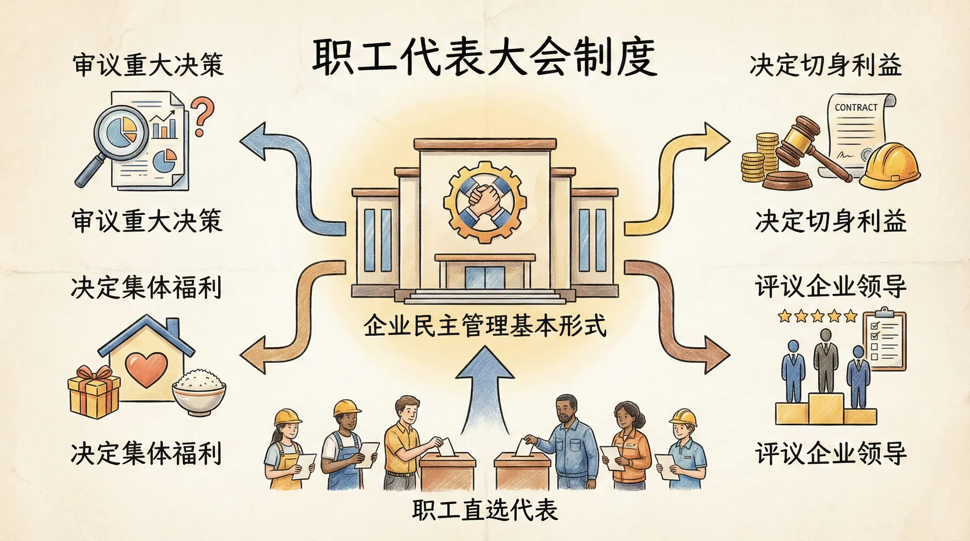 职工代表大会是企业实行民主管理的基本形式,是职工行使民主管理权利的机构。职工代表大会由职工直接选举的职工代表组成,代表全体职工利益,行使民主管理职权。