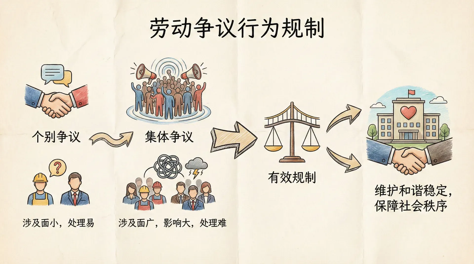 集体劳动关系中的争议不同于个别劳动争议,涉及面广,影响大,处理难度高。如何有效规制和妥善处理集体劳动争议行为,是维护劳动关系和谐稳定、保障社会秩序的重要课题。