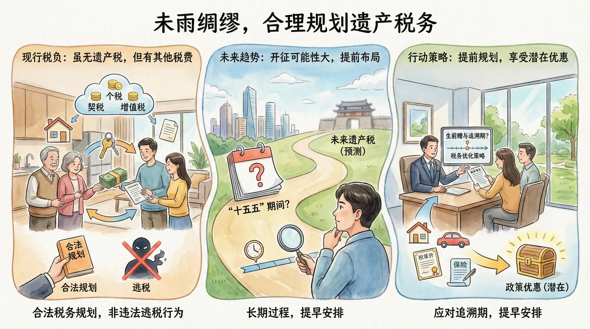 即使在遗产税尚未开征的情况下,提前进行税务规划也有重要意义。税务规划不是临时抱佛脚的事情,而是一个长期的过程。很多税务优化策略需要提前多年布局才能实现效果。如果未来遗产税设置了生前赠与的追溯期,那么只有提前规划才能真正享受到政策优惠。
