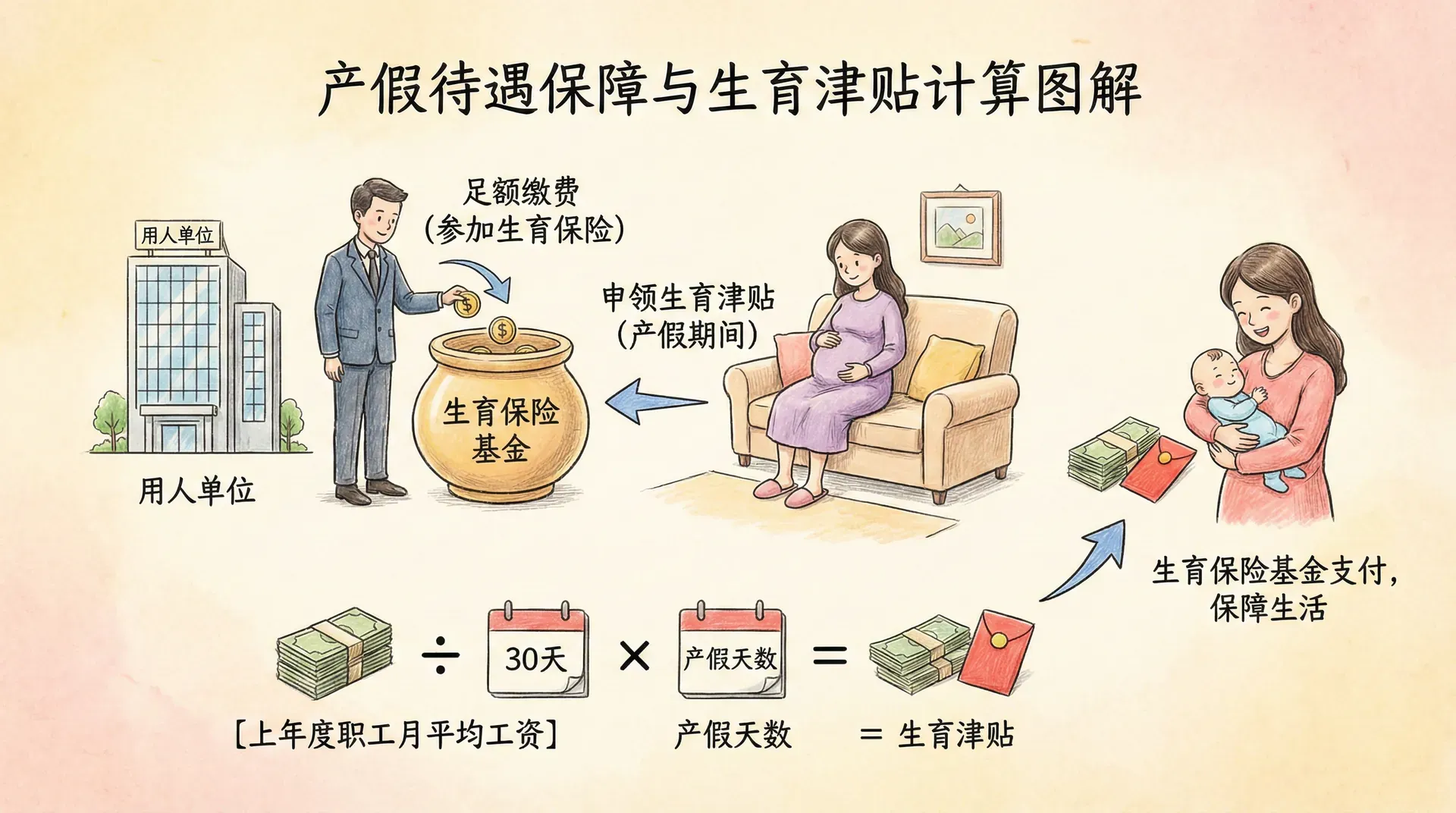 除生育津贴外,生育保险还支付生育医疗费用,包括产前检查、分娩、手术、住院等费用。这些费用按当地规定的标准报销,为女职工及其家庭减轻了经济负担。