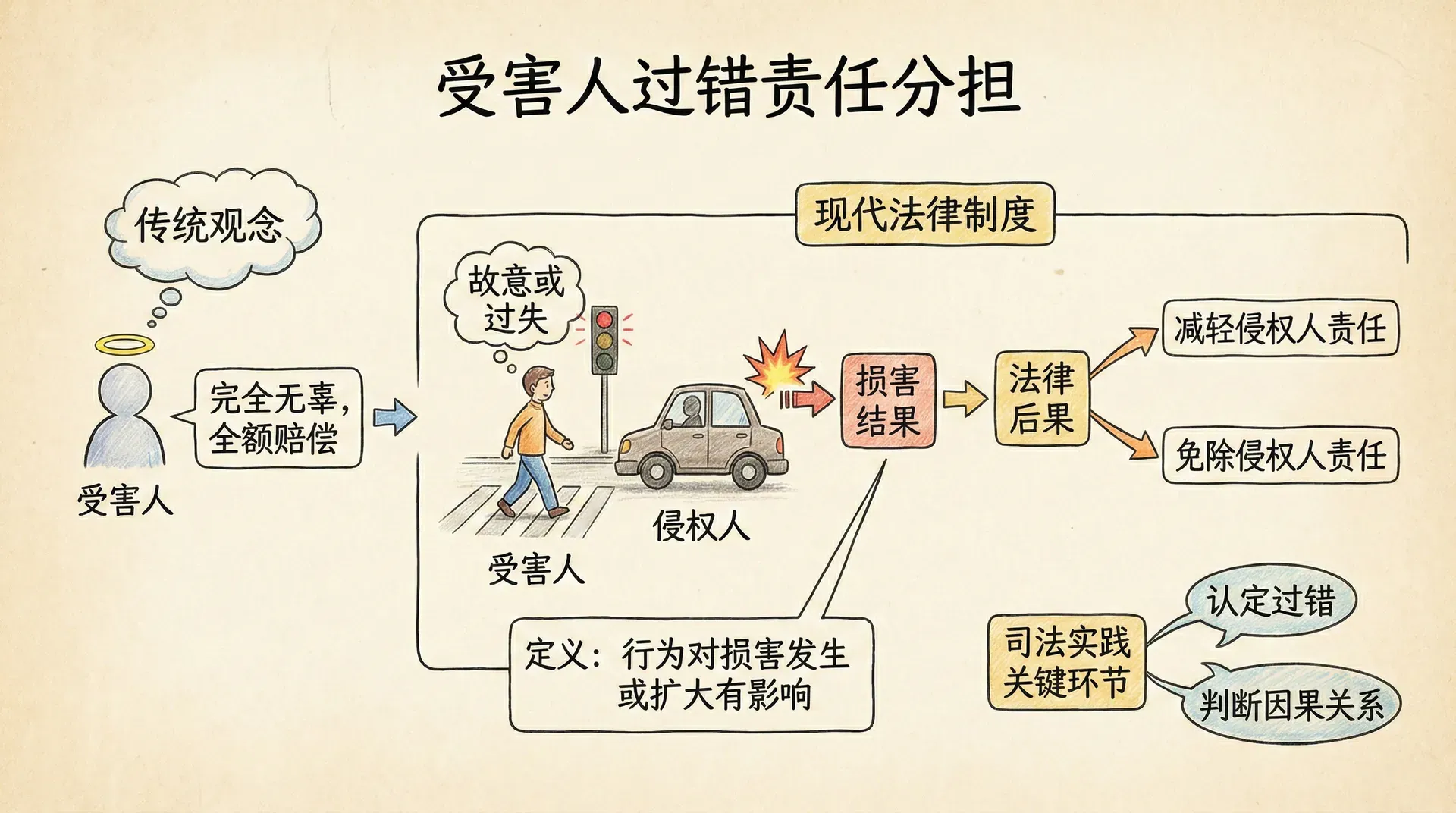 受害人过错是侵权法中最常见也最重要的抗辩事由之一。在传统观念中,人们往往认为受害人是完全无辜的,损害的发生都是侵权人的责任。但现代侵权法的理念更加强调各方的行为责任,认为每个人都应该对自己的行为负责,包括受害人在内。当受害人自身的过错行为对损害的发生起到了一定作用时,让侵权人承担全部责任就有失公平。