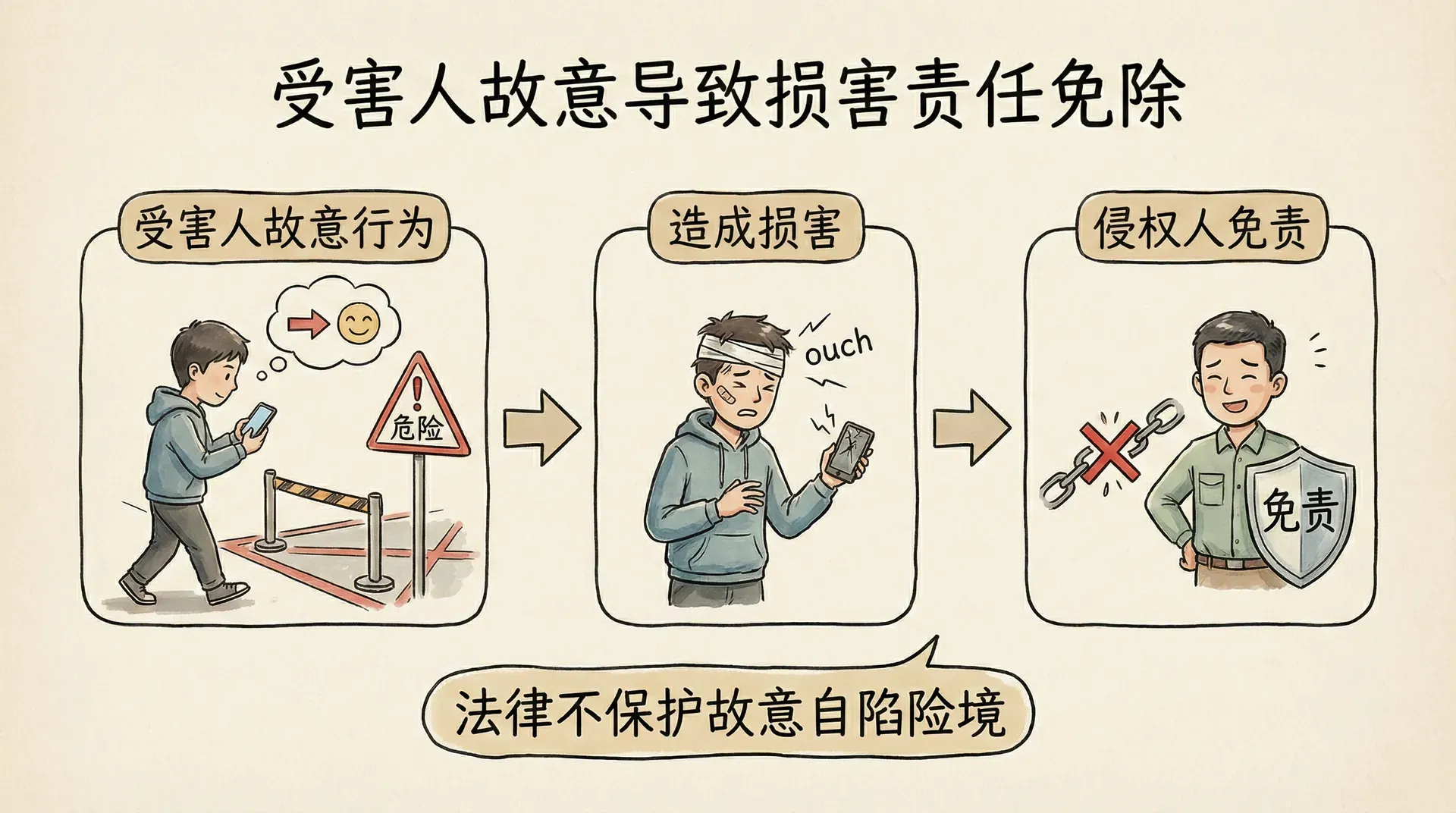受害人故意是受害人过错中最严重的一种情形,其法律后果也最为明显。当损害完全是由受害人故意造成时,侵权人可以完全免除责任。这一规则体现了法律不保护故意自陷于险境者的基本理念。