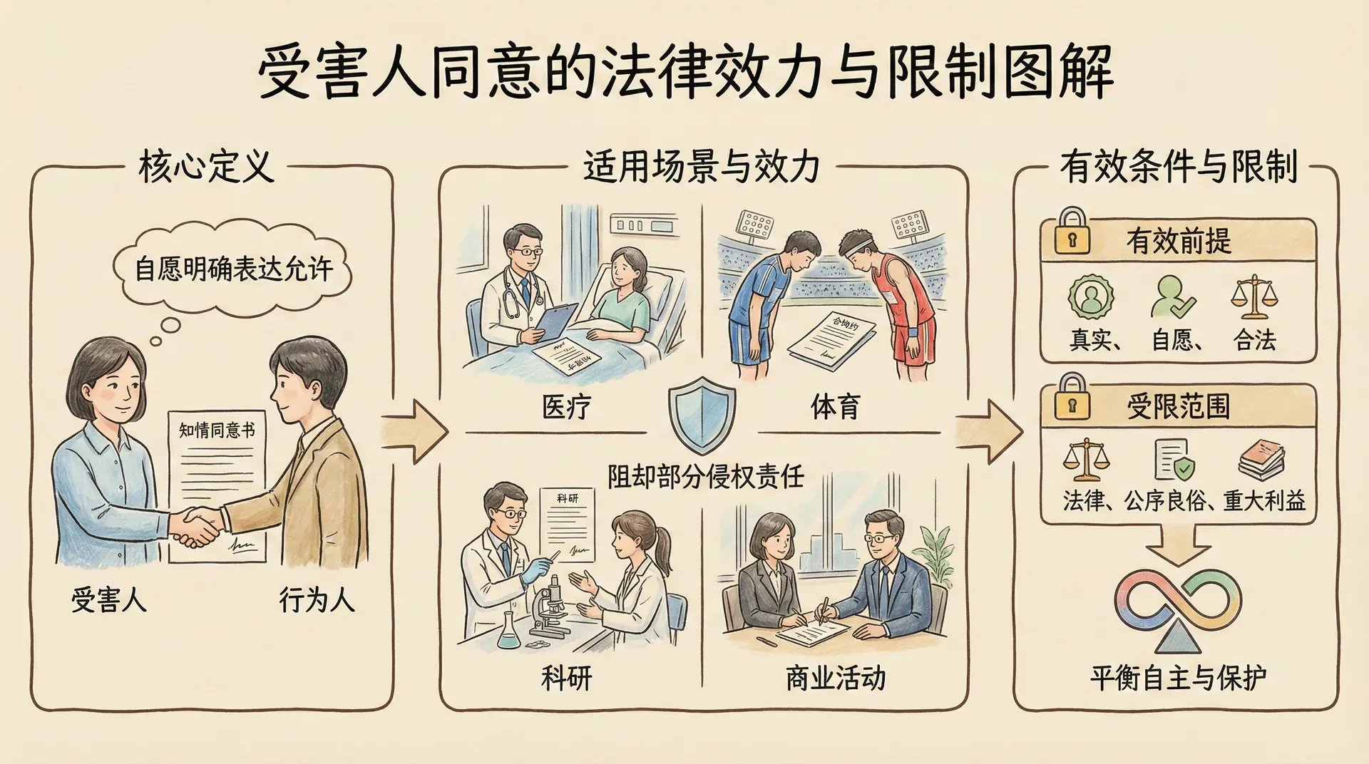 虽然受害人的同意在一定范围内可以阻却侵权行为的违法性,但这种同意权并非没有边界。法律基于保护公共利益和个人基本权益的考虑,对受害人同意的效力设置了诸多限制。