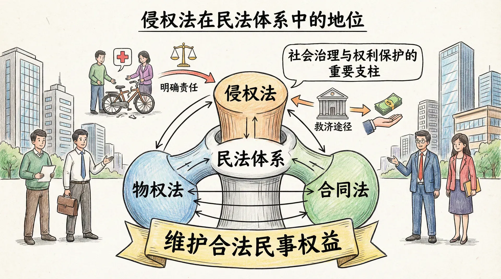 侵权法是现代民法体系中的重要组成部分,也是社会治理与权利保护的重要法律支柱。在法律体系结构中,侵权法与物权法、合同法等其他民事法律部门同等重要,共同维护公民、法人及其他组织的合法民事权益。通过明确权利受到侵害时的责任承担及救济途径,侵权法为社会成员之间的公平正义提供了有力保障。