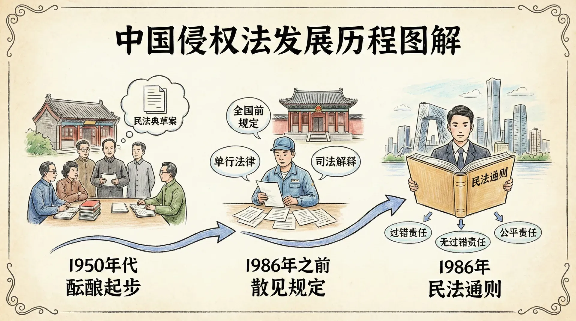 中国现代侵权法的发展经历了一个从无到有、从简单到复杂的过程,与中国社会的变革和法治建设紧密相连。