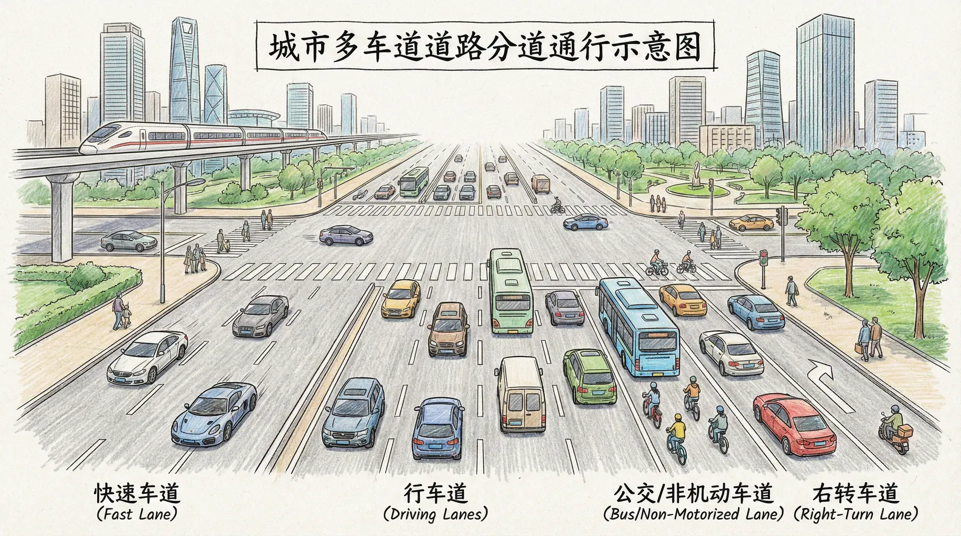 在中国的道路交通实践中,分道通行的理念贯穿于各类道路的设计和管理。城市道路通常划分为机动车道、非机动车道和人行道,高速公路则进一步细分为不同功能的车道。这种空间上的分隔不仅是物理上的隔离,更是法律上的明确界定。