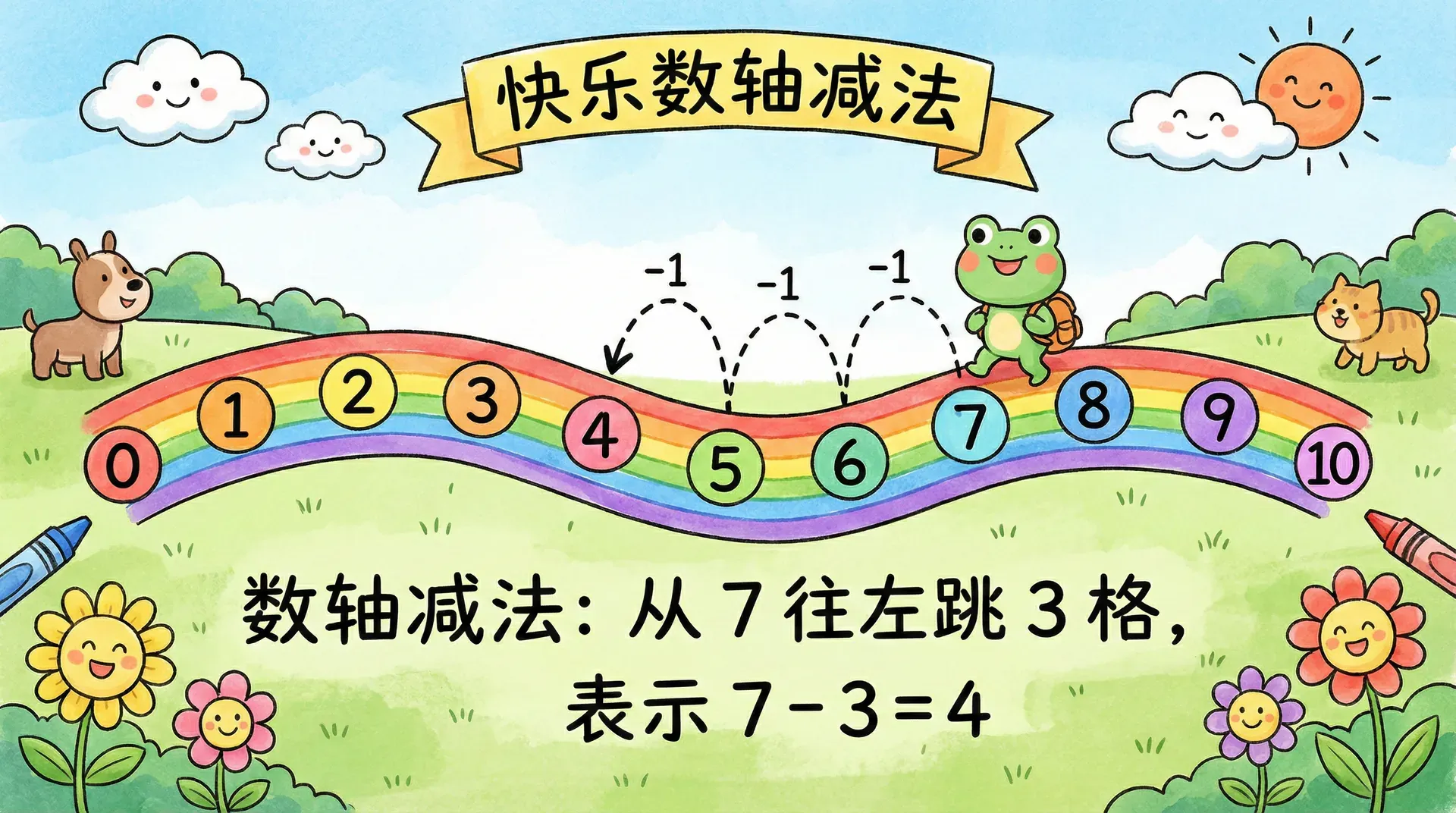 方法一 · 倒着数: 从被减数开始往小的方向数,数减数那么多步。比如 ,从 7 倒数 3 步:6、5、4,得到 4。