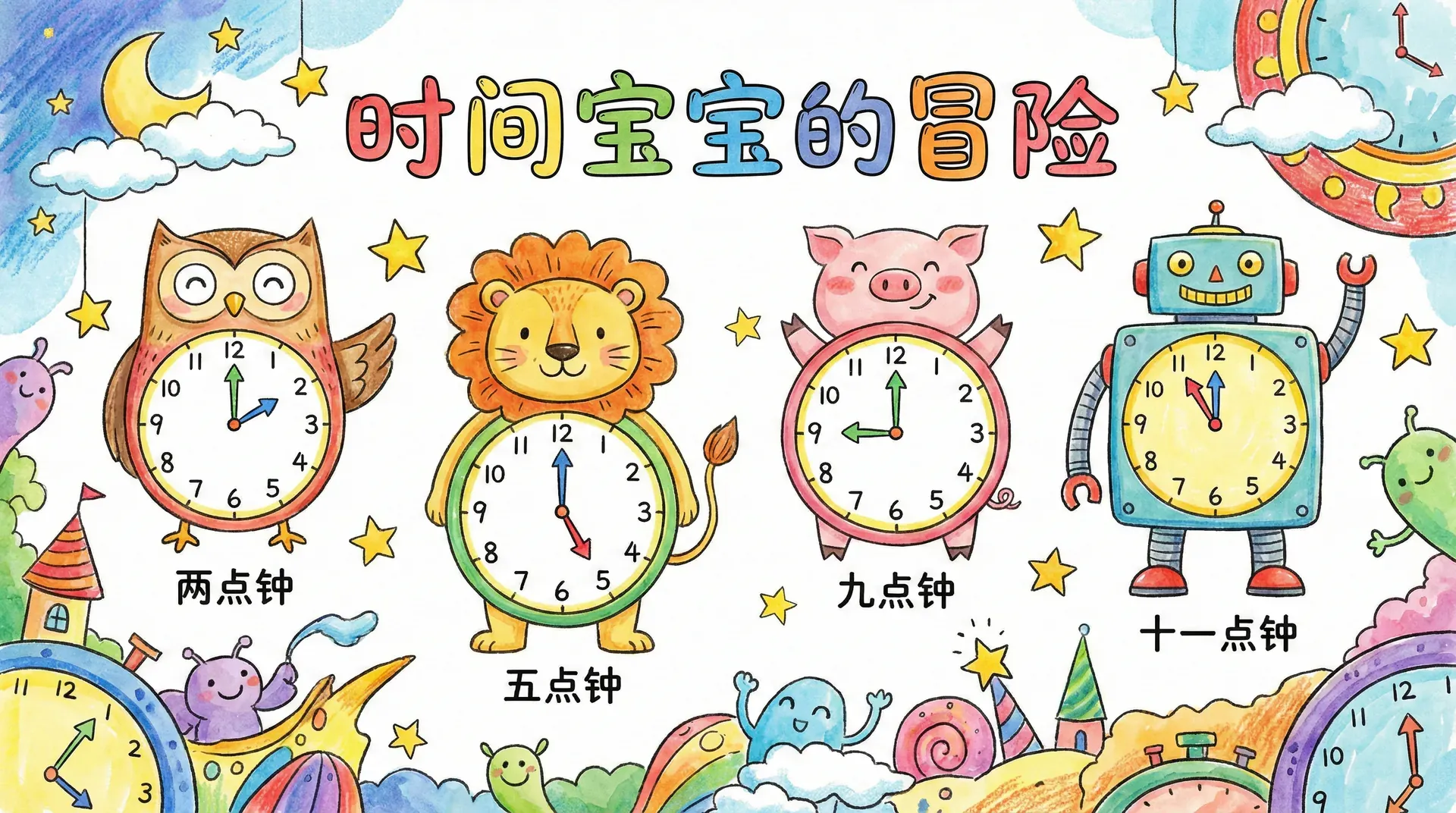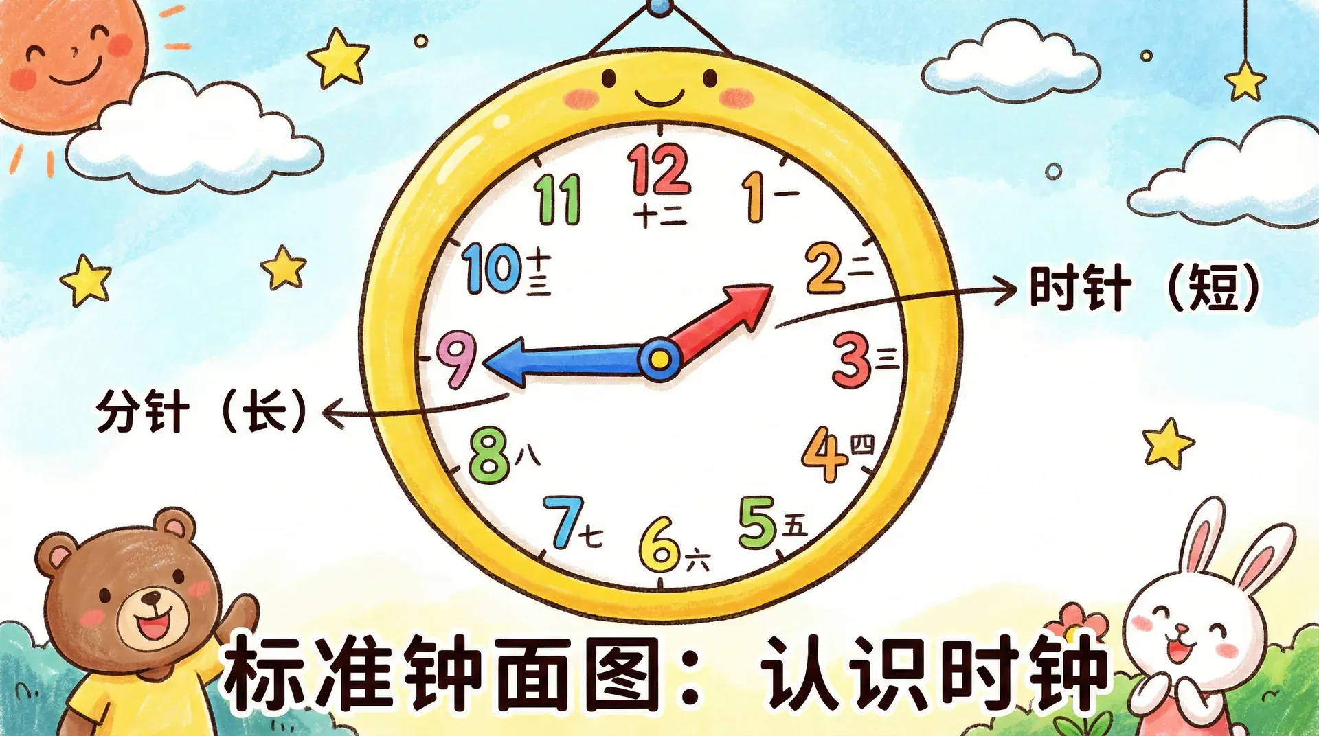 这节课你会学到: 认识钟面上的时针和分针,学会读出整点和半点时间,理解时间的基本单位。