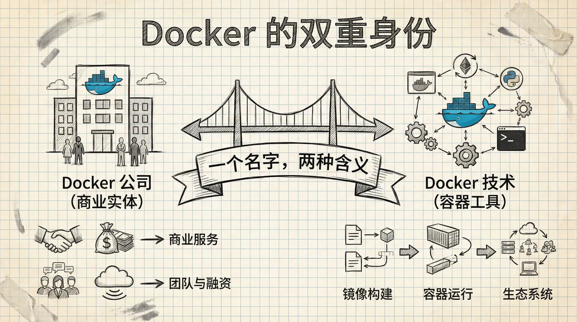当我们谈论容器时,“Docker” 是一个绕不开的话题。但有趣的是,“Docker” 这个词其实有两种截然不同的含义,我们可能指的是 Docker 这家公司,也可能指 Docker 这项技术本身。