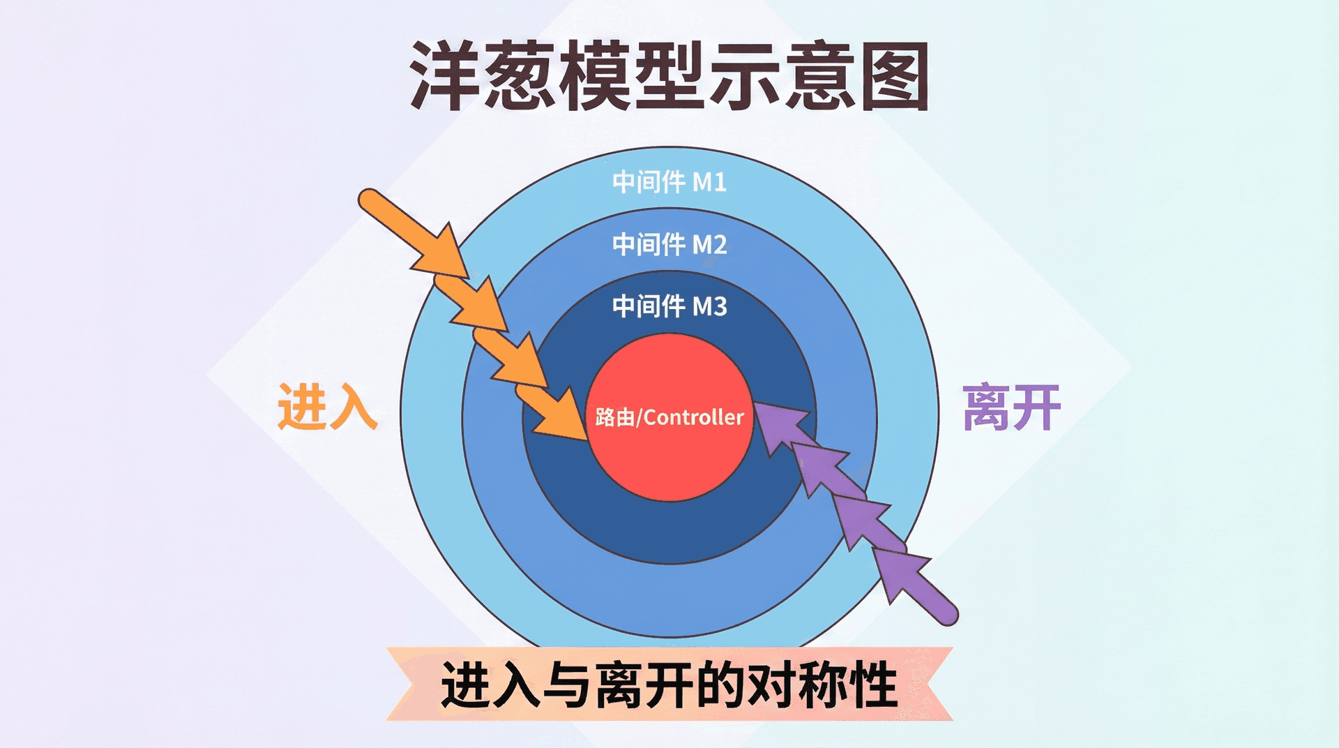 在理解了中间件是「管道上的一环」之后,下一个关键问题是:当有多个中间件时,请求与响应究竟按什么顺序经过它们?这就引出了洋葱模型。