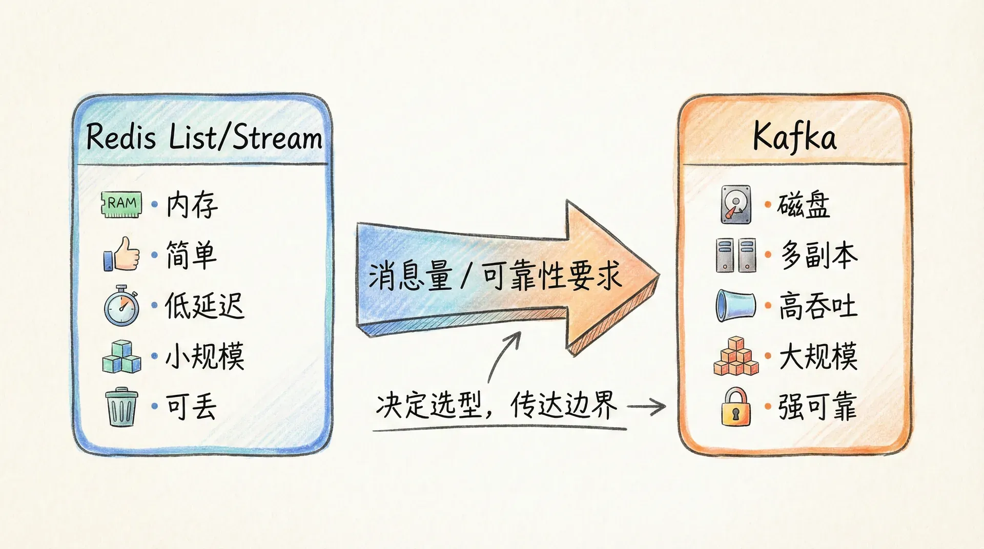 我们先从 List 与 Stream 的适用场景说起,再落到简单消息队列的实现,最后讨论 Redis 与 Kafka 的边界,帮助你在选型时看清取舍。