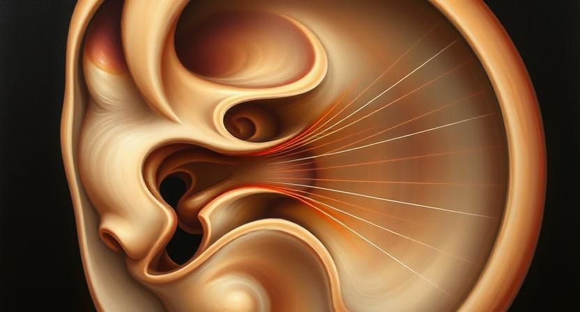 声波通过听觉管道后,撞击中耳的鼓膜。鼓膜以与撞击它的声波相同的频率振动。鼓膜连接着三个微小的骨头,这些骨头将振动传递到内耳的卵圆窗。