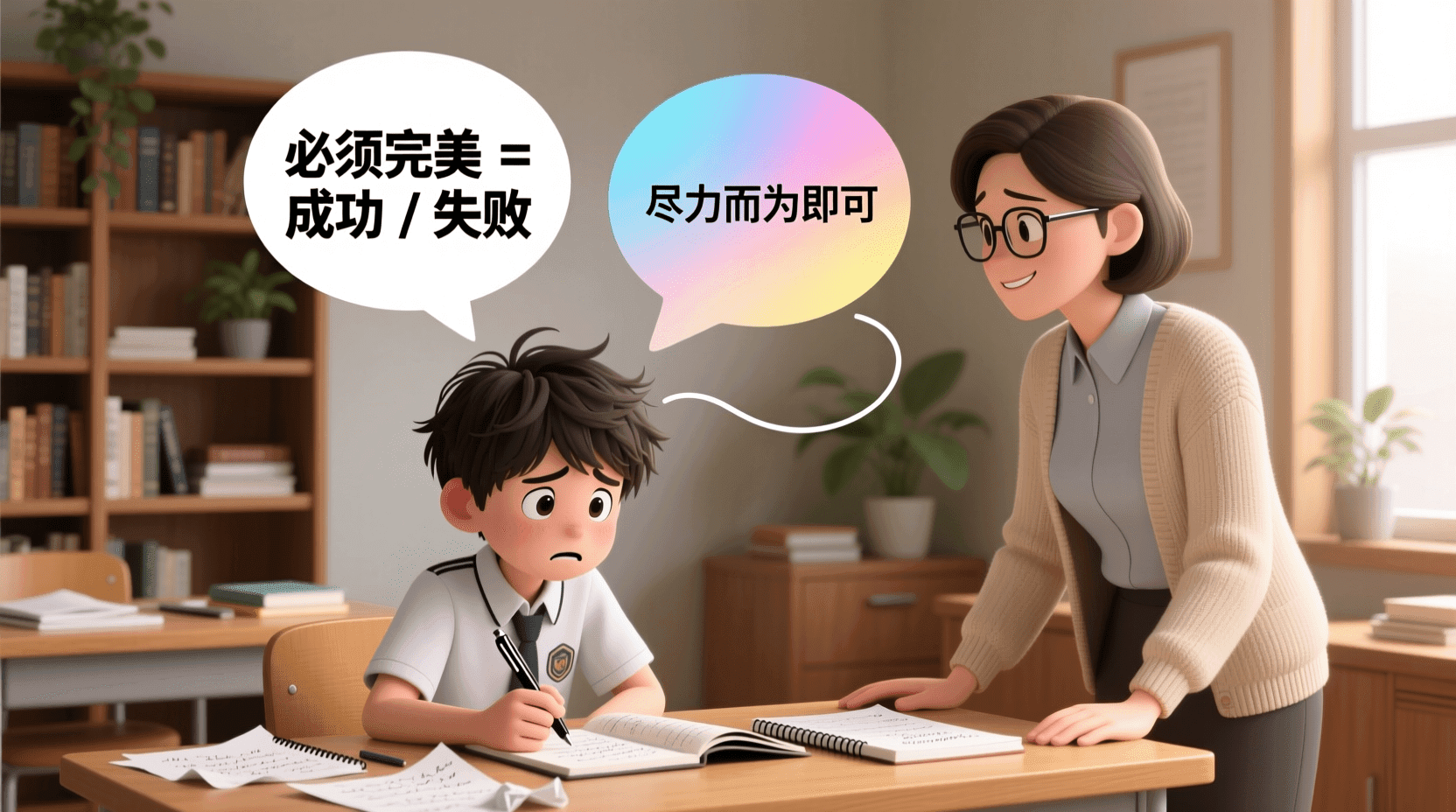 一位总是拖延的学生,可能有这样的自动思维:“我必须做到完美,否则就是失败。”认知行为治疗师会帮助他识别这个思维陷阱,挑战“非黑即白”的思维方式,建立更合理的标准:“我可以尽力而为,不完美也是可以接受的。”