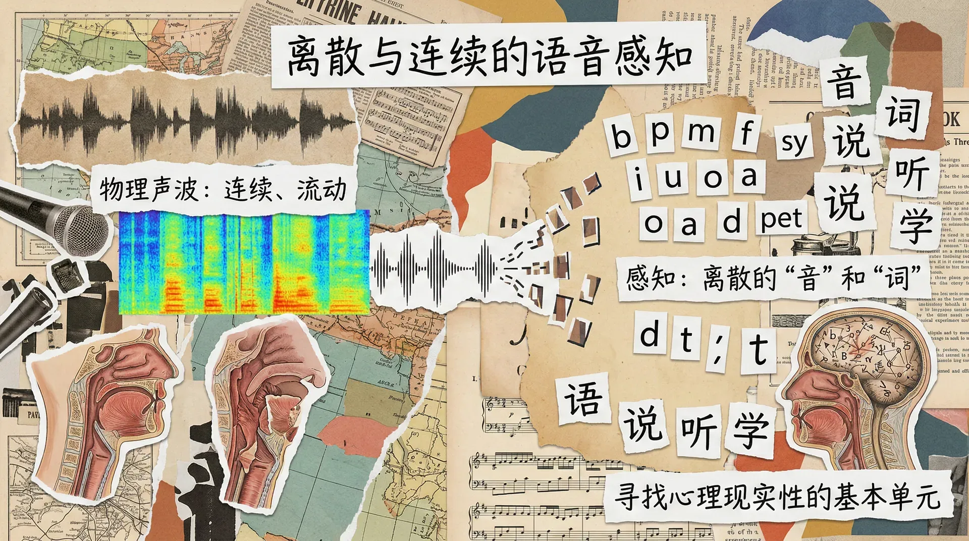 语音感知研究的核心难题之一,在于语音信号在物理上是连续的,但人类感知到的却是离散的“音”和“词”。连续性与离散性之间的矛盾,推动研究者从语言学的角度寻找语音分析的基本单元,并在心理学实验中检验这些单元是否具有心理上的现实性。