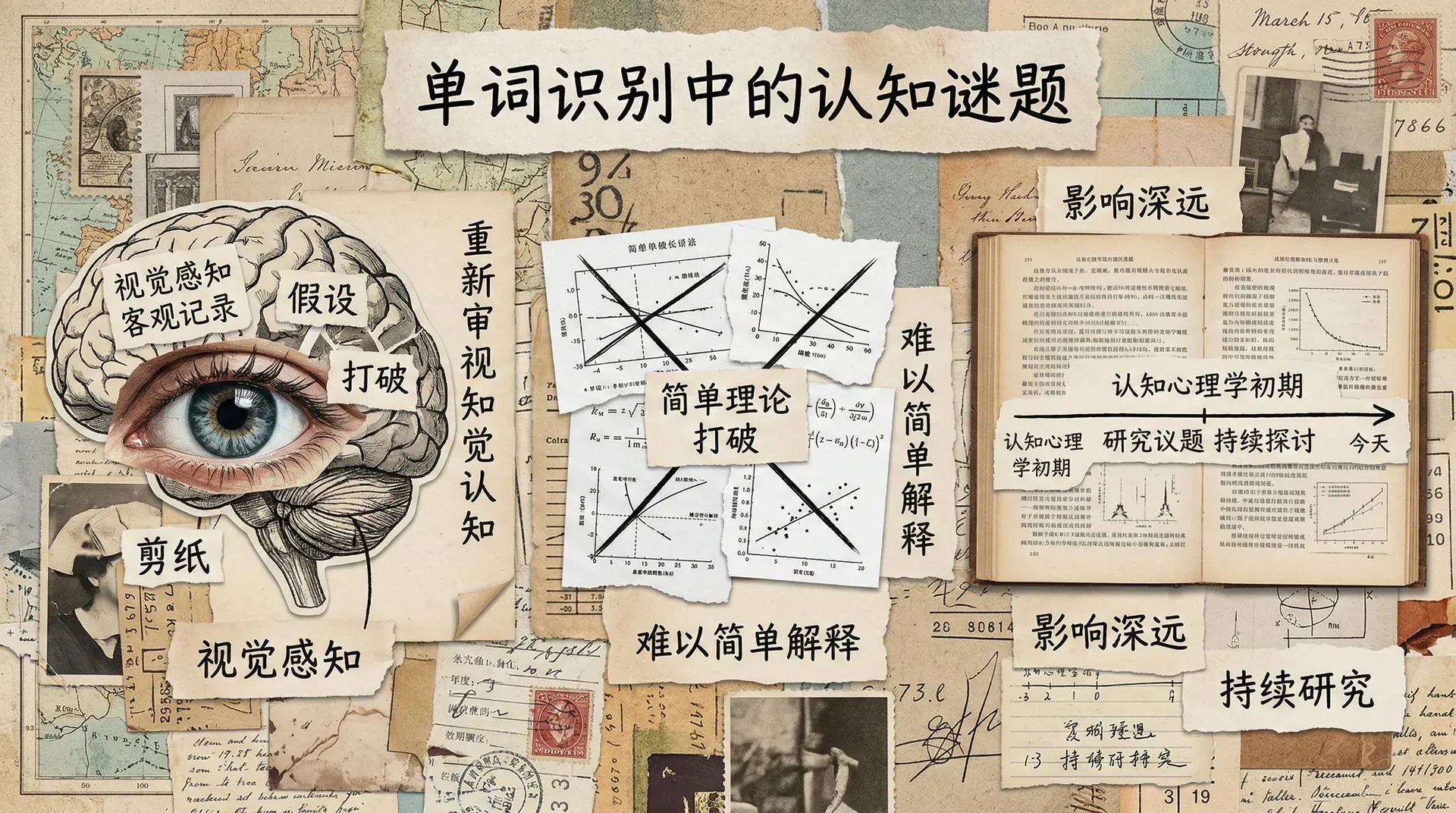 在单词识别的研究中,科学家们发现了一些难以用简单理论解释的现象。这些现象打破了“视觉感知是客观记录”的常识性假设,促使研究者重新审视知觉与认知之间的关系。以下三个现象在认知心理学中影响深远,至今仍是研究者持续探讨的议题。