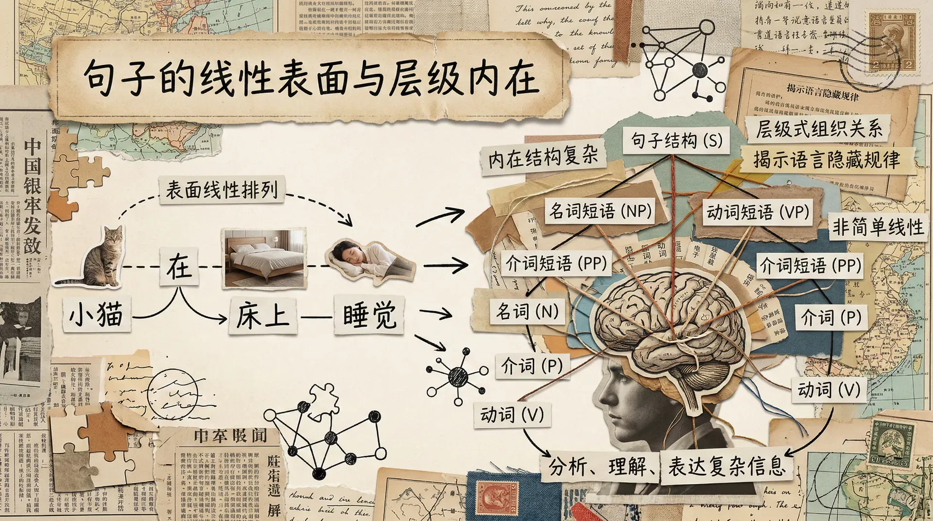 语言是人类最神奇的能力之一。每当我们听到一句话,大脑就像一位出色的建筑师,瞬间将一串声音信号构建成有意义的结构。这个过程看似自然流畅,背后却涉及极其复杂的认知机制。正如我们在前一节讨论的那样,听觉记忆并不是简单地储存孤立的信息片段,而是主动创造结构——通常是节奏性的结构——来组织和重新表述接收到的信息。从随机数字串转向自然语言的句子时,结构的作用变得更加明显。现代语言学的发展让我们清楚地认识到,句子远不是其组成部分的简单相加;要理解语言认知,必须深入探讨句子结构的奥秘。