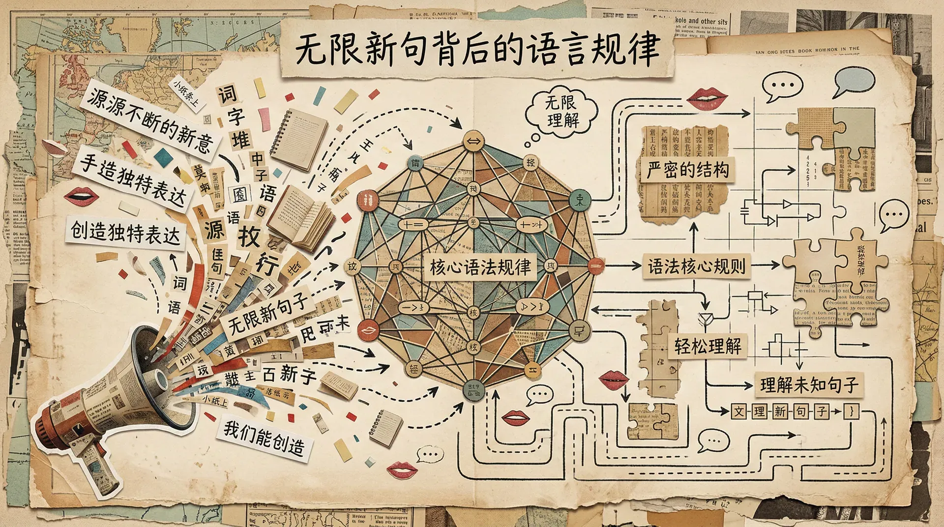 在日常交流与文学创作中,语言总能源源不断地产生新意,令人惊叹。人们能够理解以前从未听过的句子,也能随时创造出独特而合乎语法的新表达。语言的新颖性,似乎与某种严密的结构规律共存,这构成了语言学领域极为核心的问题之一:为什么无限的新句子,都能被我们轻松地理解和使用?