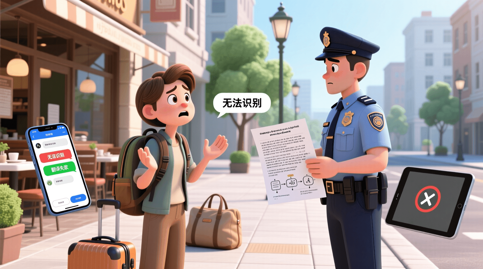 一位外地游客在当地餐厅用餐时卷入纠纷,由于语言障碍无法与警察有效沟通。警察按程序告知其权利,但复杂的法律用语让这位游客难以理解。在中国,类似的权利告知是: