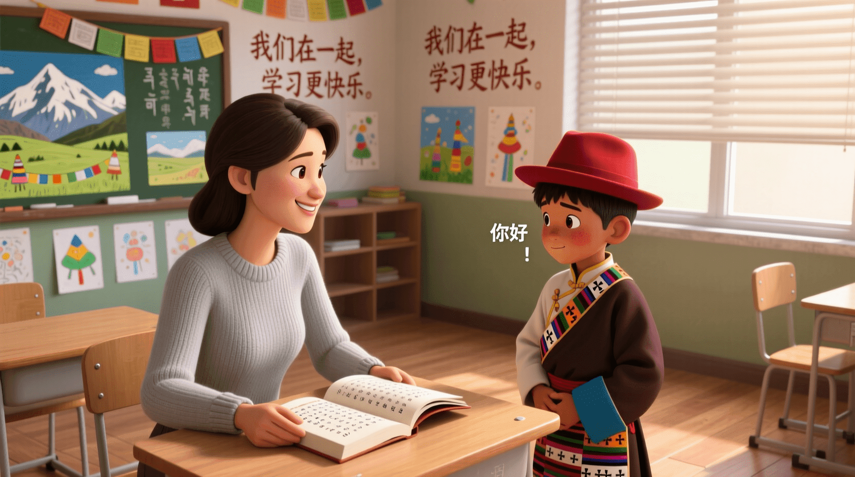 在家里,和父母祖父母在一起,只能说我们的民族语言;这是他们真正理解的语言。一切都按我们的传统来,但同时他们希望我学好汉语……在学校,我感觉很不同,因为大家都说汉语,包括我。下午回家又回到我们的传统中。