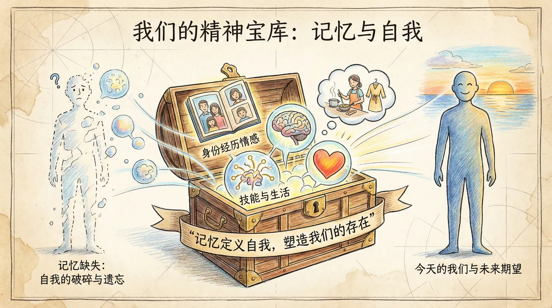 如果明天你醒来时,突然忘记了自己是谁,忘记了家人的面孔,忘记了如何说话,甚至忘记了如何穿衣服和做饭——这样的生活会是什么样子?虽然听起来像科幻电影的情节,但这正是记忆缺失患者所面临的现实。记忆并不仅仅是我们大脑中的一个功能,它实际上就是我们本身。我们的个性、经历、技能、情感,甚至我们对未来的期望,都建立在记忆的基础之上。每当我们回忆起第一次约会的紧张兴奋,或是品尝妈妈做的家常菜时涌起的温暖,这些记忆不仅仅是过去的回放,更是塑造今天的我们的重要因素。